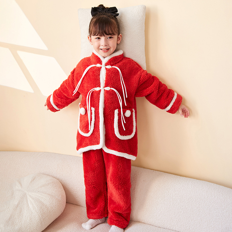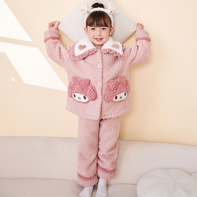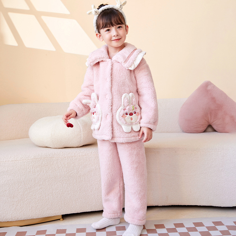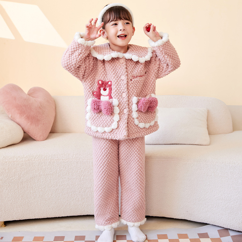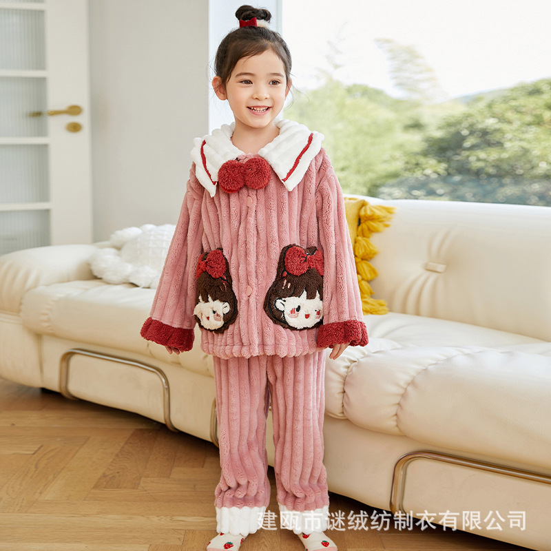 소녀의 가을/겨울 잠옷 산호 양털 기모 두꺼운 어린 소녀의 귀여운 만화 어린이 플란넬 가정 옷 세트