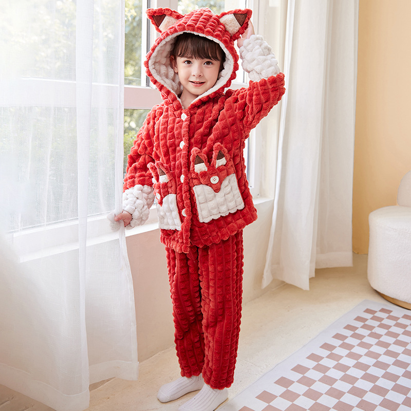 소녀의 가을/겨울 잠옷 산호 양털 기모 두꺼운 어린 소녀의 귀여운 만화 어린이 플란넬 가정 옷 세트스토어 가기