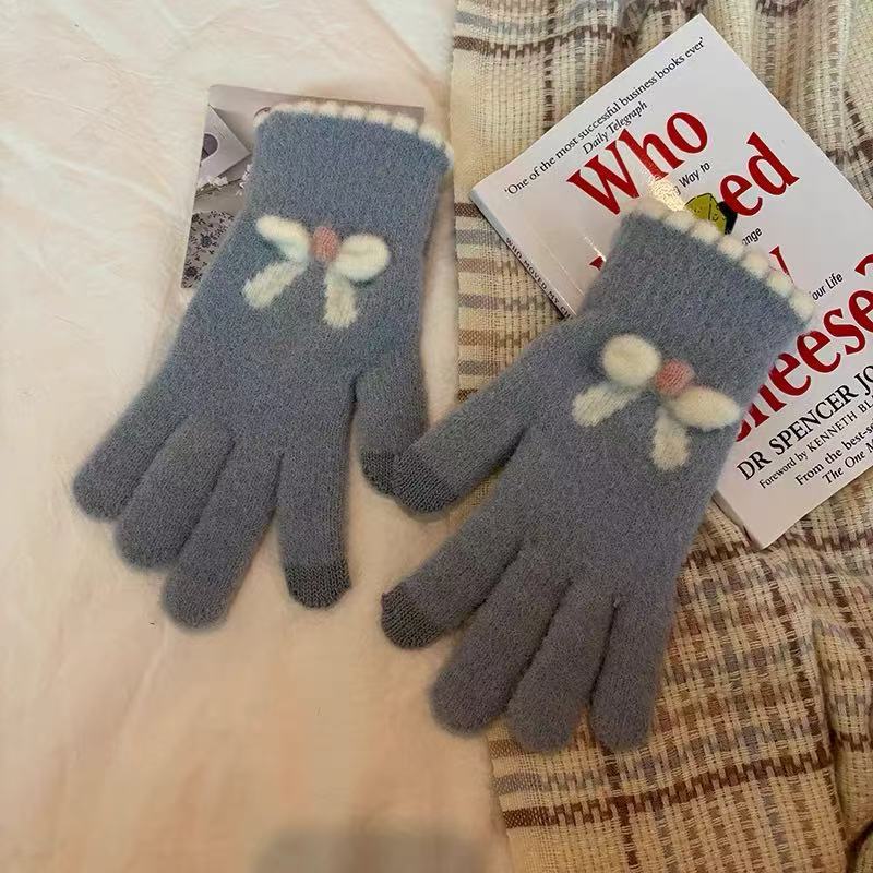 니트 터치 스크린 장갑 숙녀 겨울 따뜻한 패딩 기모 다섯 손가락 야외 승마 손가락 한국 장갑 도매