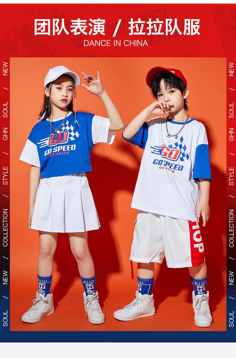 어린이 전국 조수 초등학교 경기를위한 어린이 치어 리더 의상 유치원 공연 의상 개회식 수업 의상스토어 가기