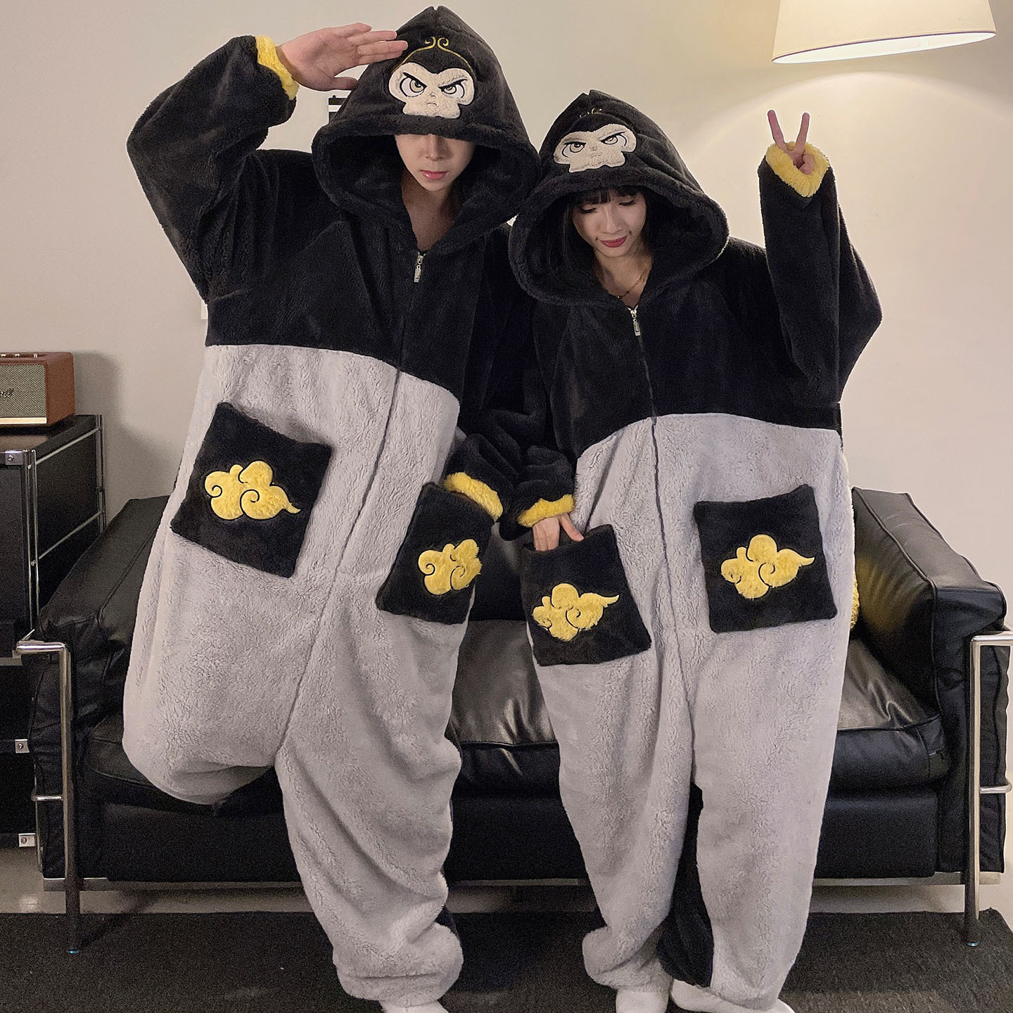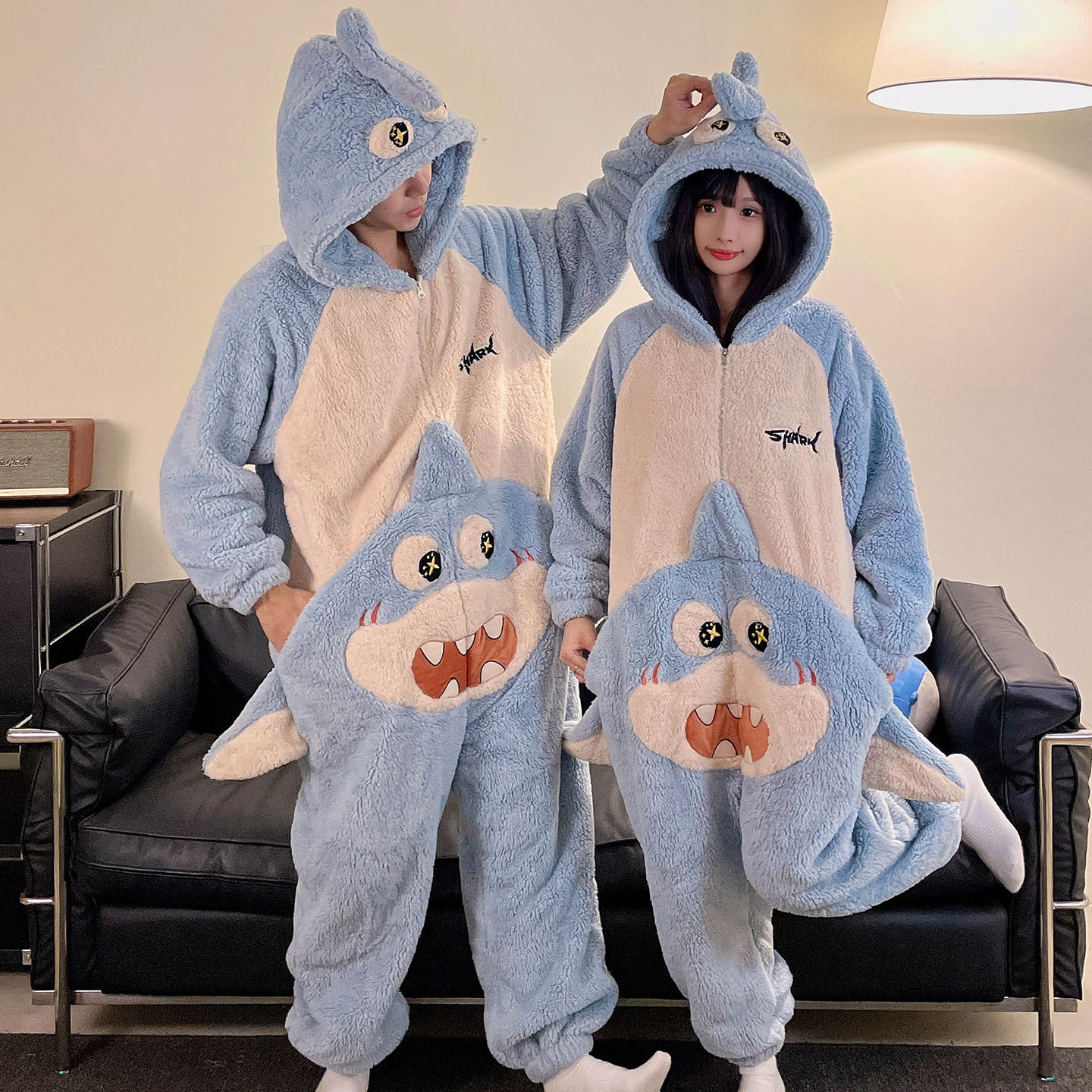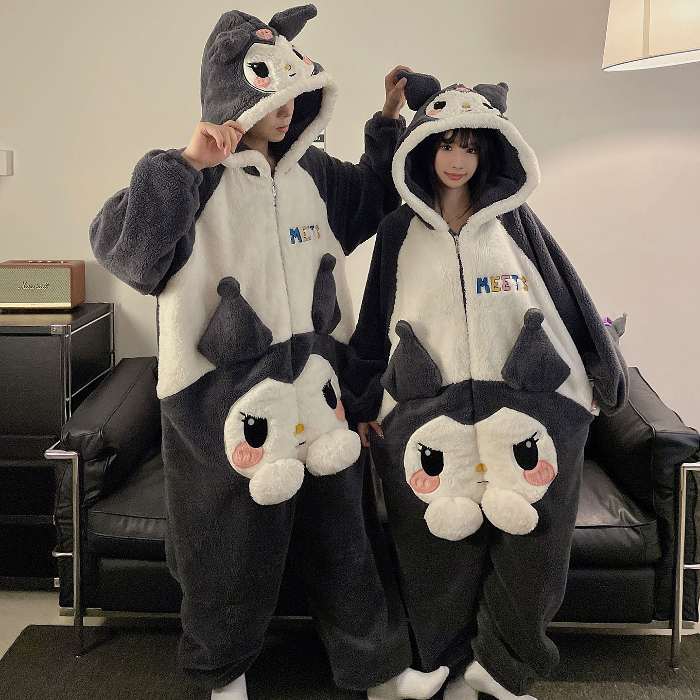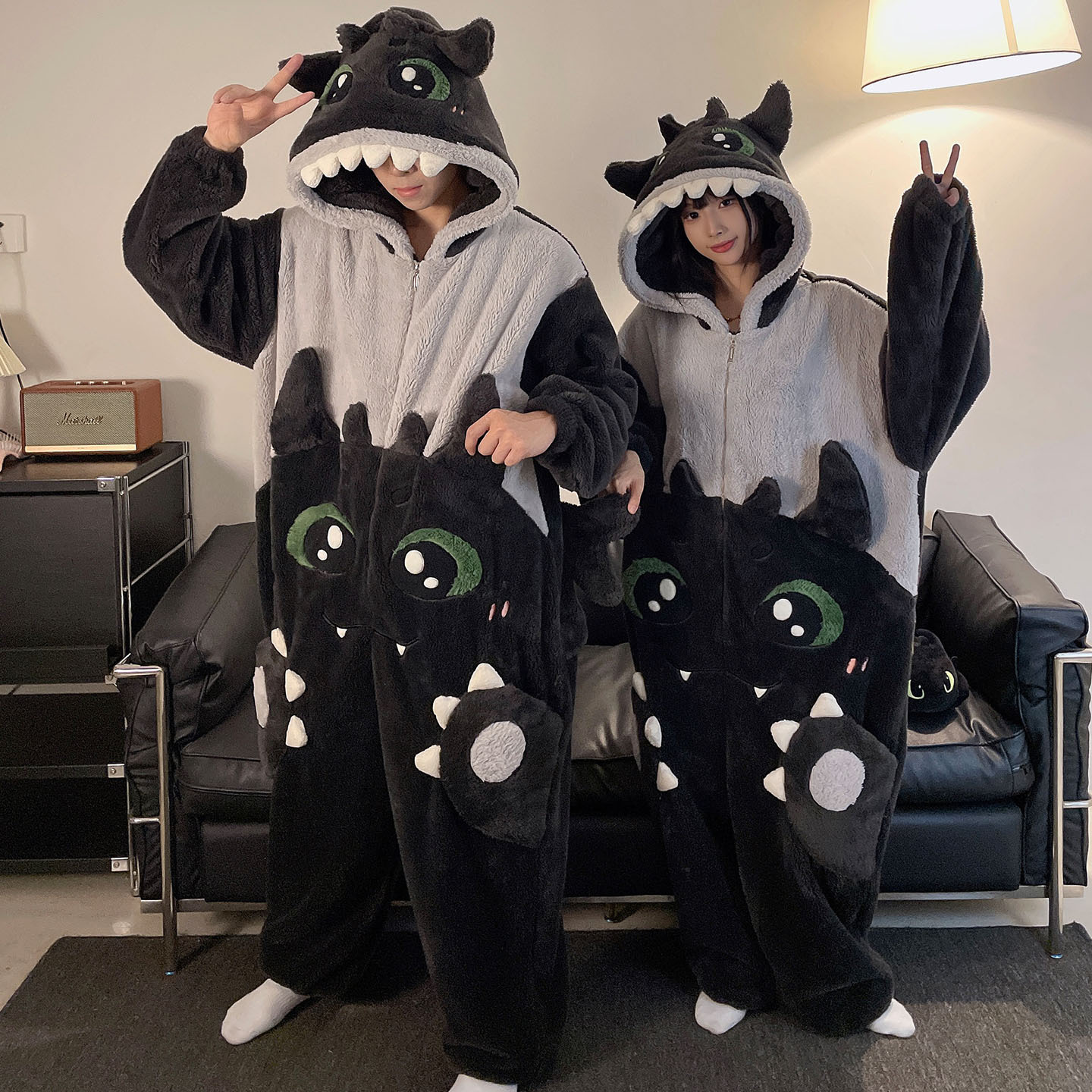 원피스 커플 잠옷 여자의 산호 양털 두꺼운 기모 가을과 겨울 남자의 지퍼 플란넬 가정 의류스토어 가기