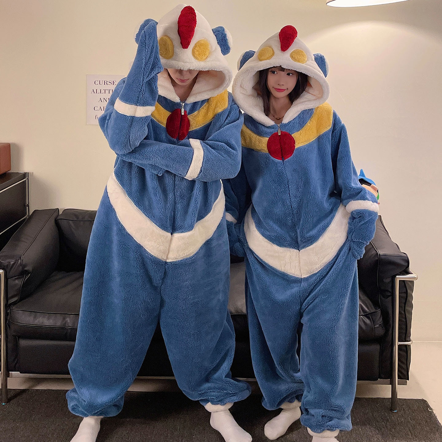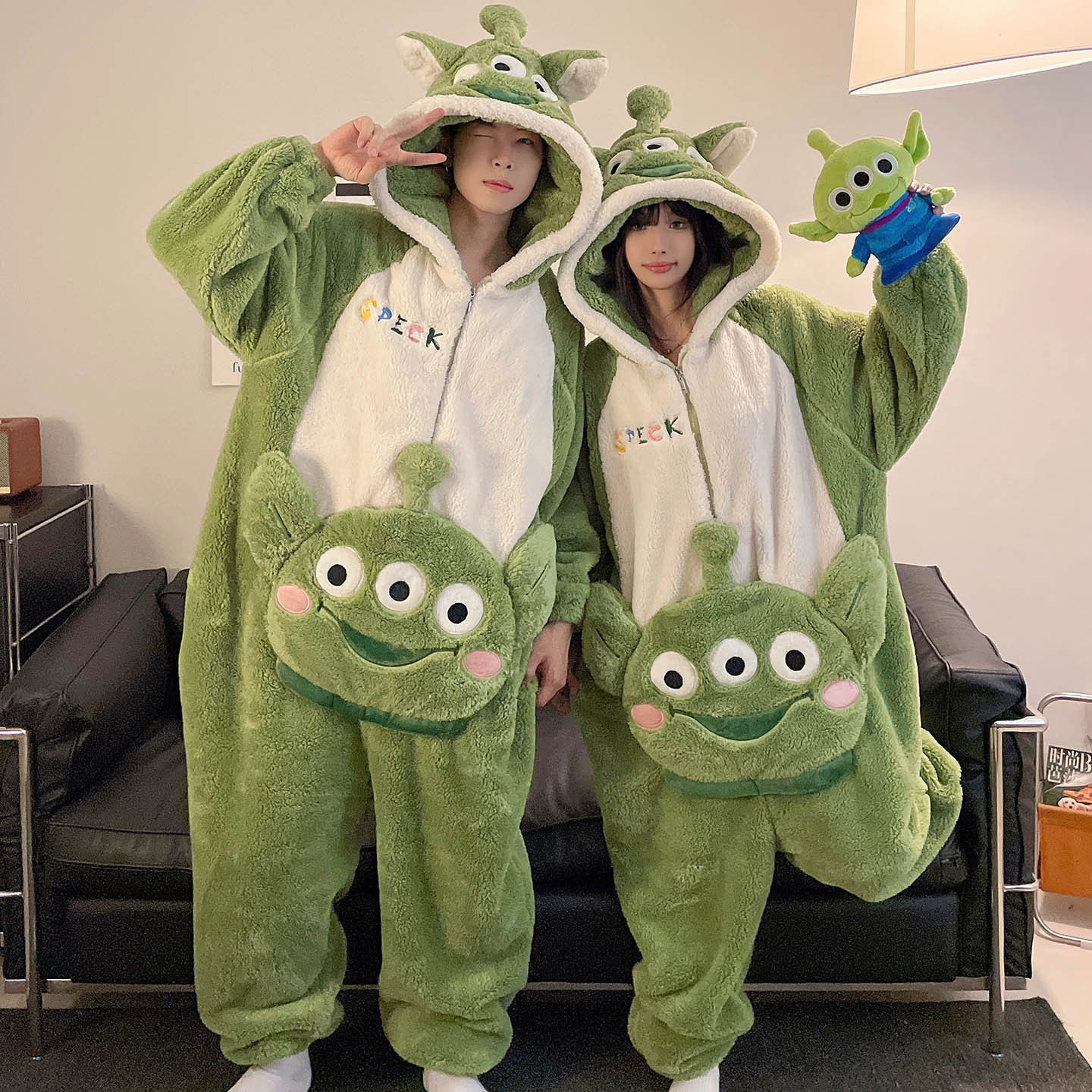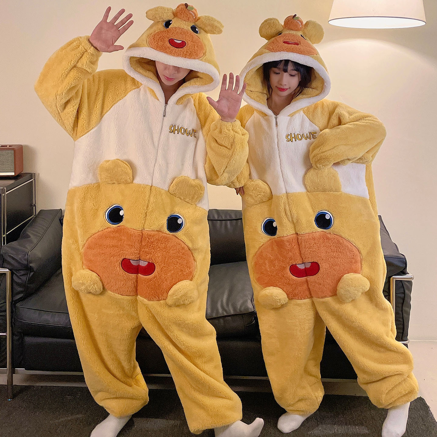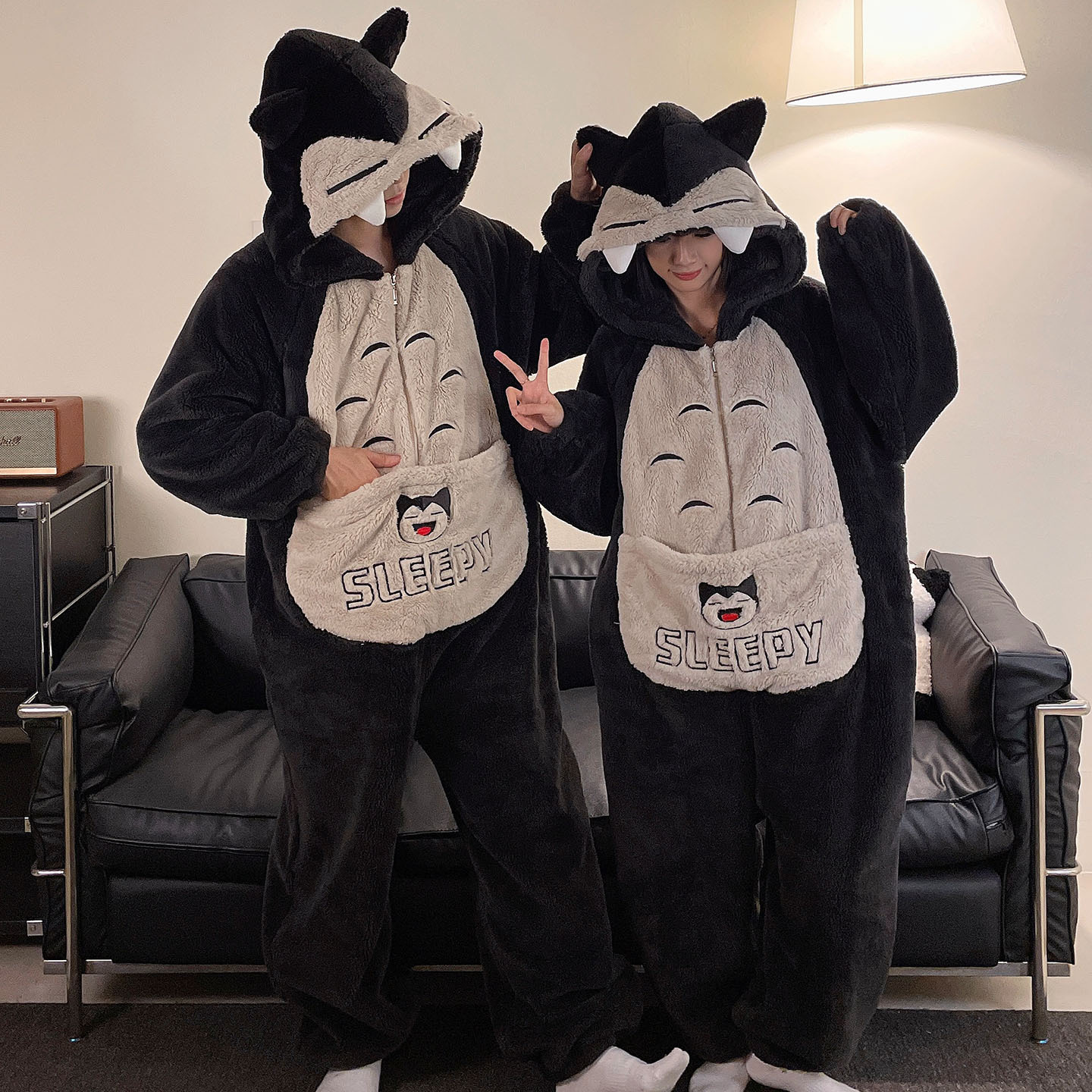 원피스 커플 잠옷 여자의 산호 양털 두꺼운 기모 가을과 겨울 남자의 지퍼 플란넬 가정 의류스토어 가기