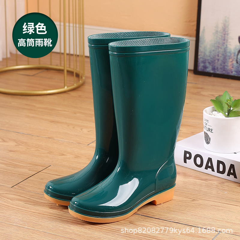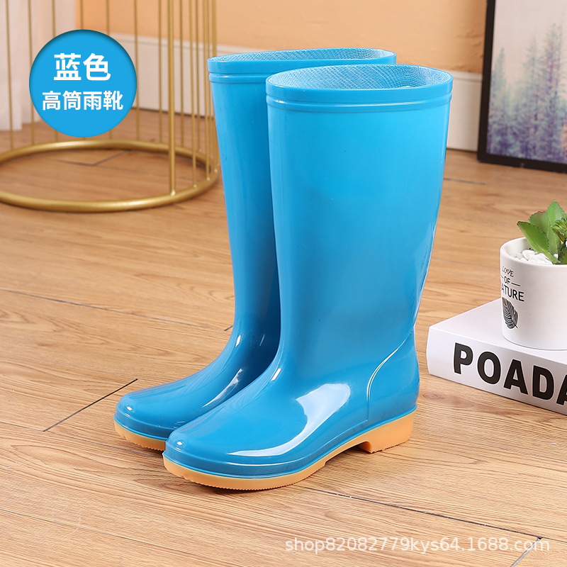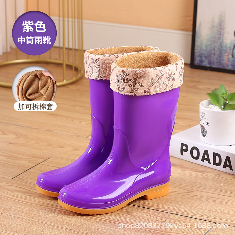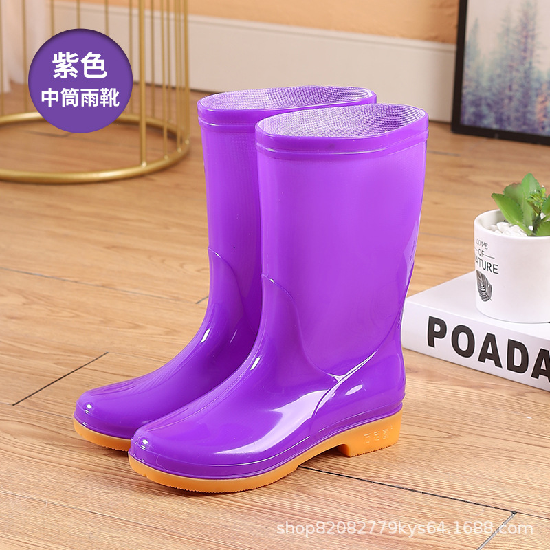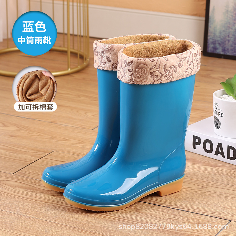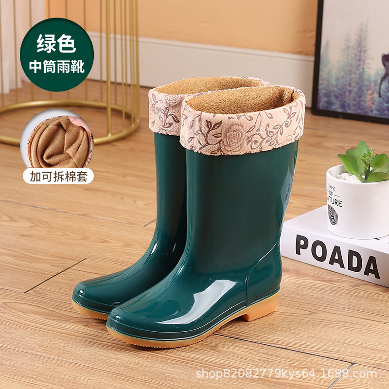 여성용 쇠고기 힘줄 레인 슈즈 미끄럼 방지 작업 물 부츠 중간 높은 튜브 주방 세차 긴 튜브 방수 노동 따뜻한 경량 고무 신발