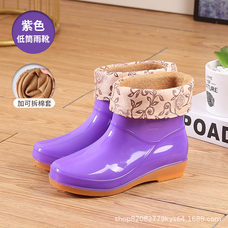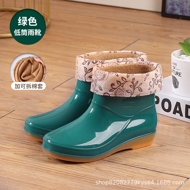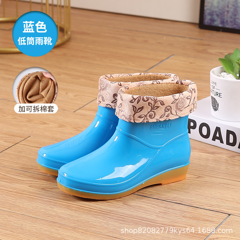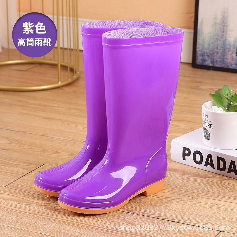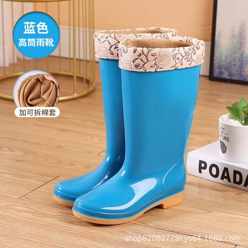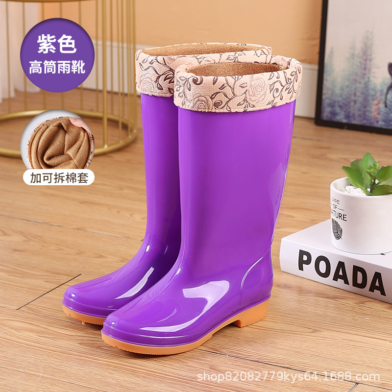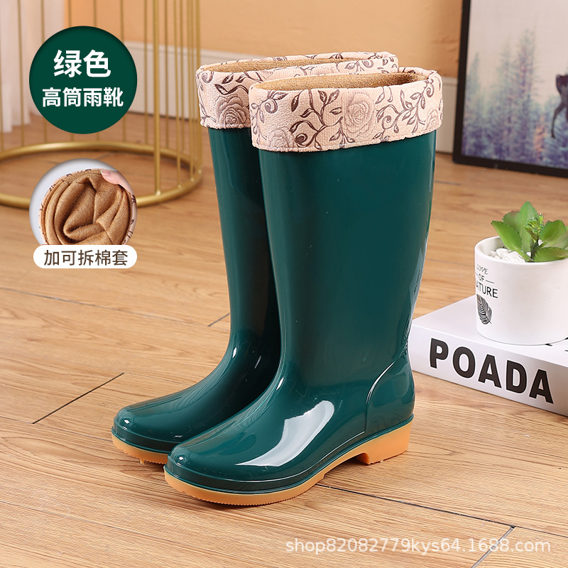 여성용 쇠고기 힘줄 레인 슈즈 미끄럼 방지 작업 물 부츠 중간 높은 튜브 주방 세차 긴 튜브 방수 노동 따뜻한 경량 고무 신발