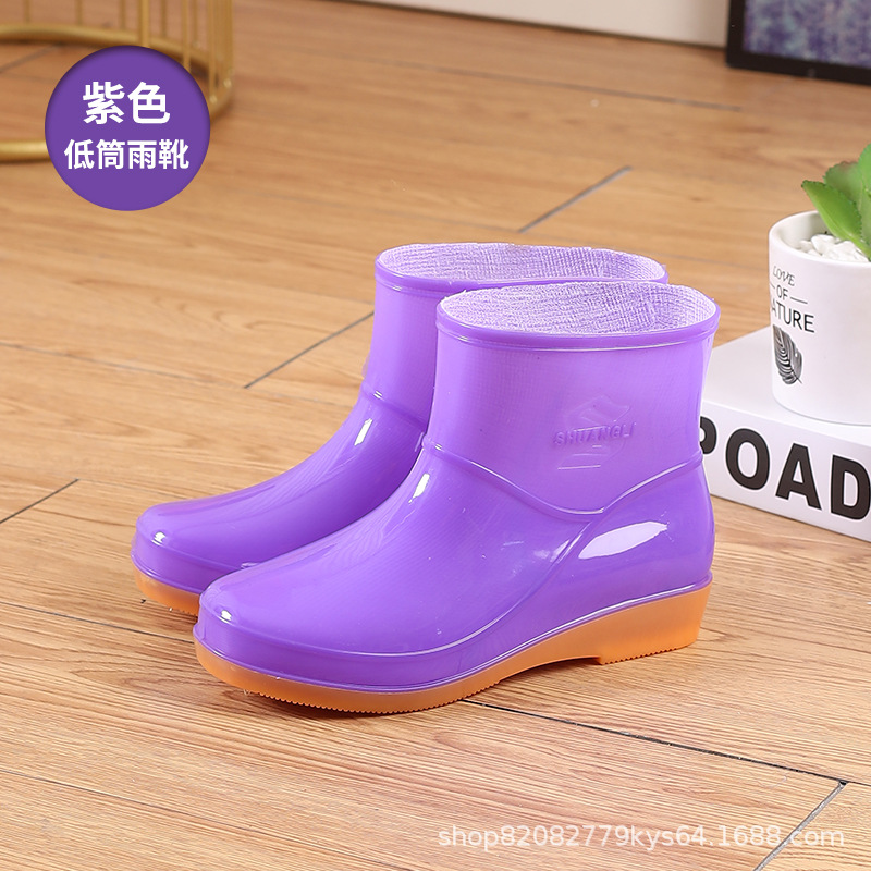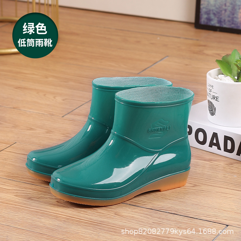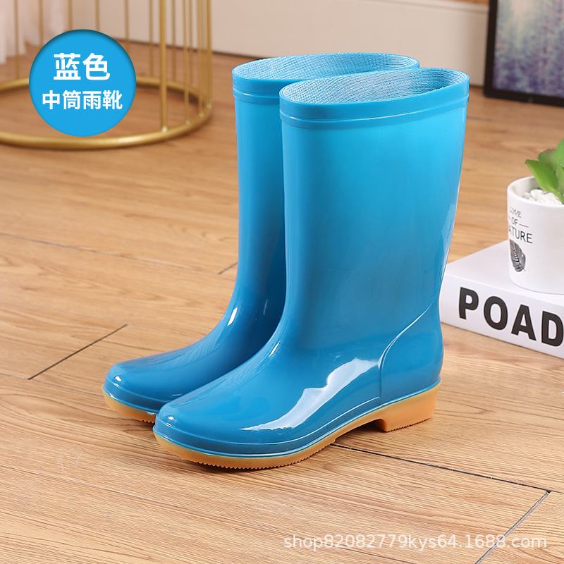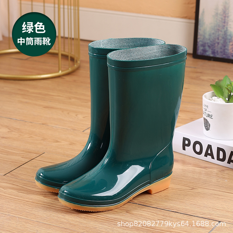 여성용 쇠고기 힘줄 레인 슈즈 미끄럼 방지 작업 물 부츠 중간 높은 튜브 주방 세차 긴 튜브 방수 노동 따뜻한 경량 고무 신발스토어 가기