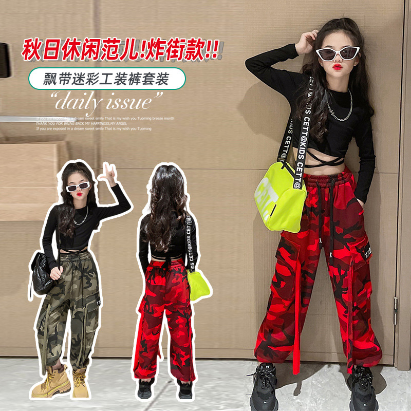 여아용 카모플라주 작업복 바지 2024 봄 가을 미국 레트로 힙합 하이 스트리트 디자인 캐주얼 와이드 팬츠 트렌디 브랜드