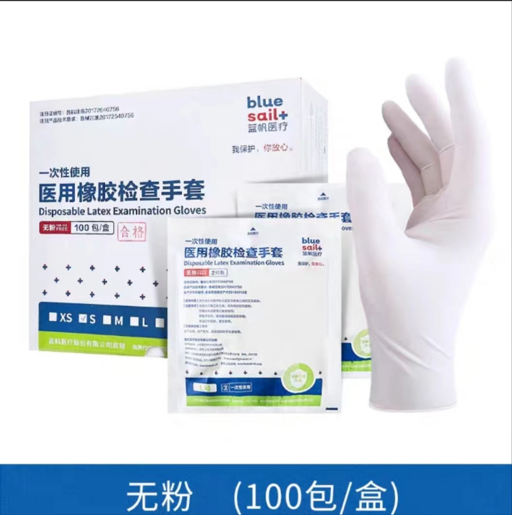 블루 돛 살균 일회용 고무 장갑 검사 별도의 포장 무균 의료 특수 살균 라텍스 장갑