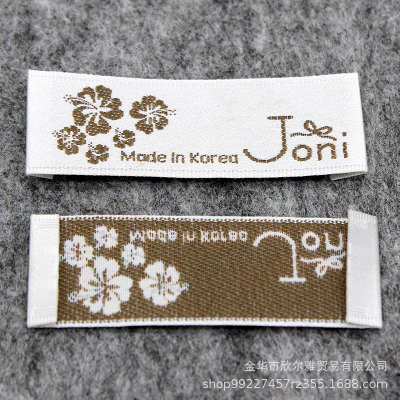 하이 엔드 짠 새틴 칼라 라벨 짠 라벨 재고 제조 한국 칼라 라벨 짠 상표 디자인 및 생산