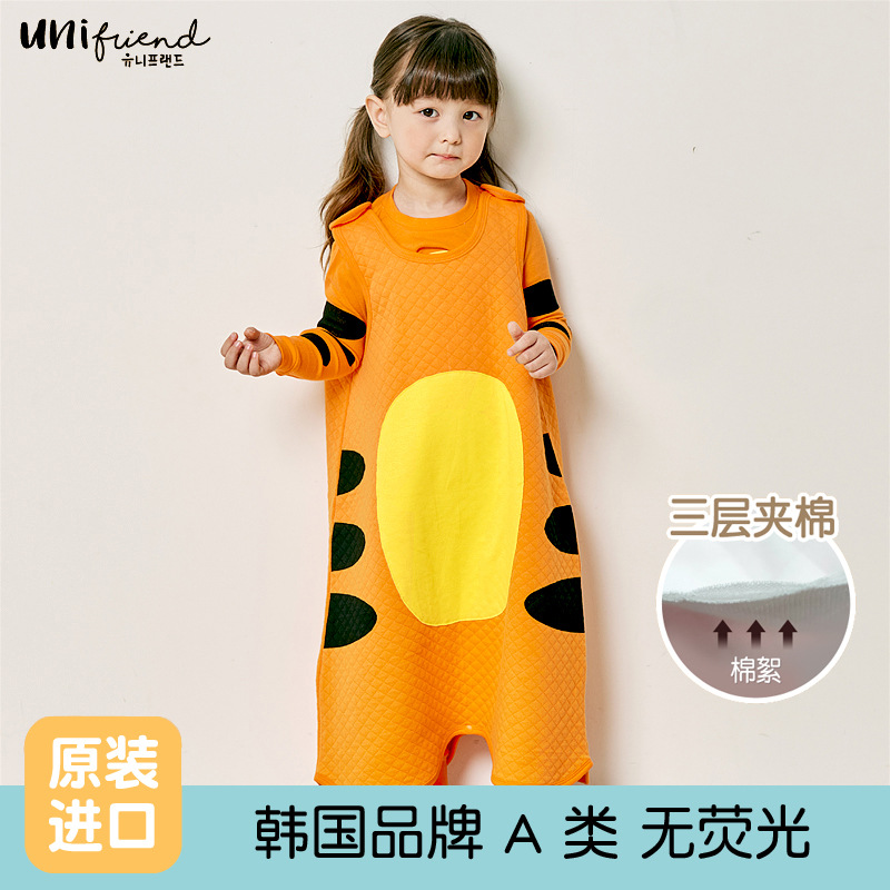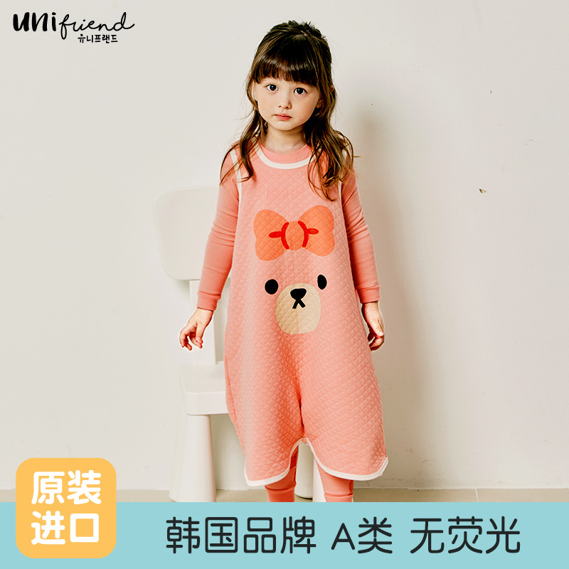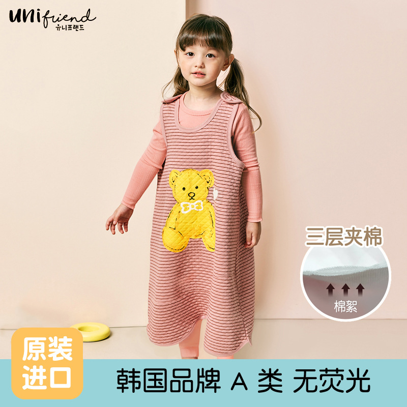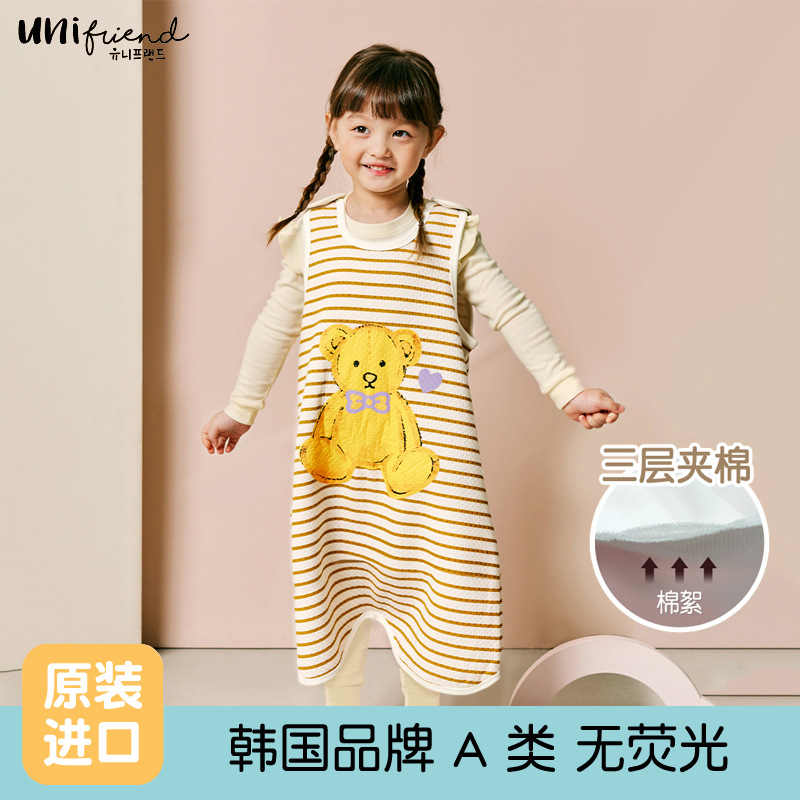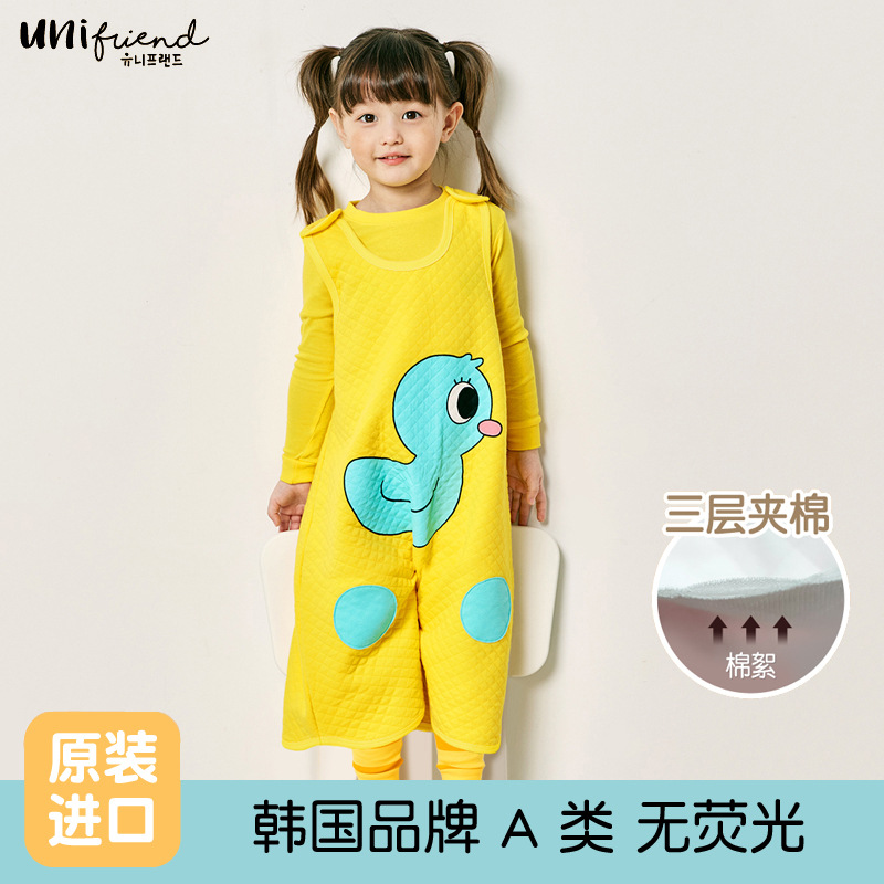 유니프렌드 가을과 겨울 남학생과 여학생을위한 한국의 새로운 어린이 조끼 아기 가을과 겨울 3 층 따뜻한 안티 킥 침낭