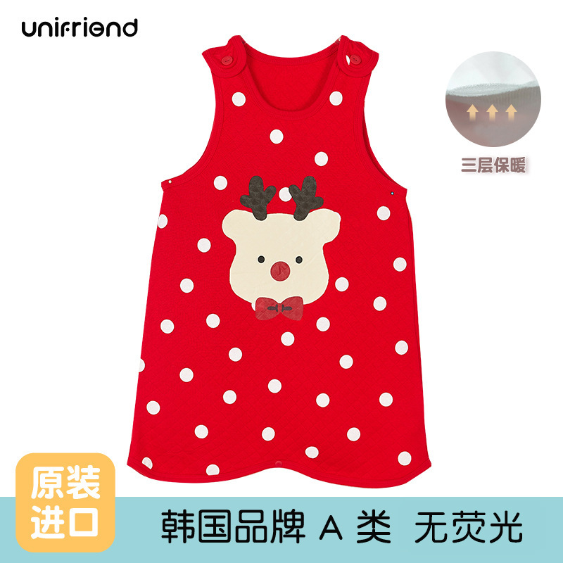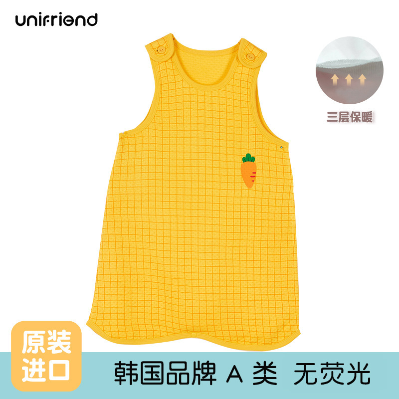 유니프렌드 가을과 겨울 남학생과 여학생을위한 한국의 새로운 어린이 조끼 아기 가을과 겨울 3 층 따뜻한 안티 킥 침낭스토어 가기