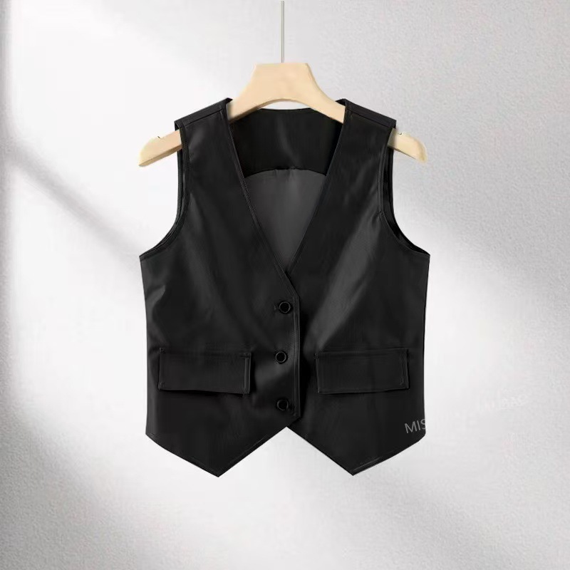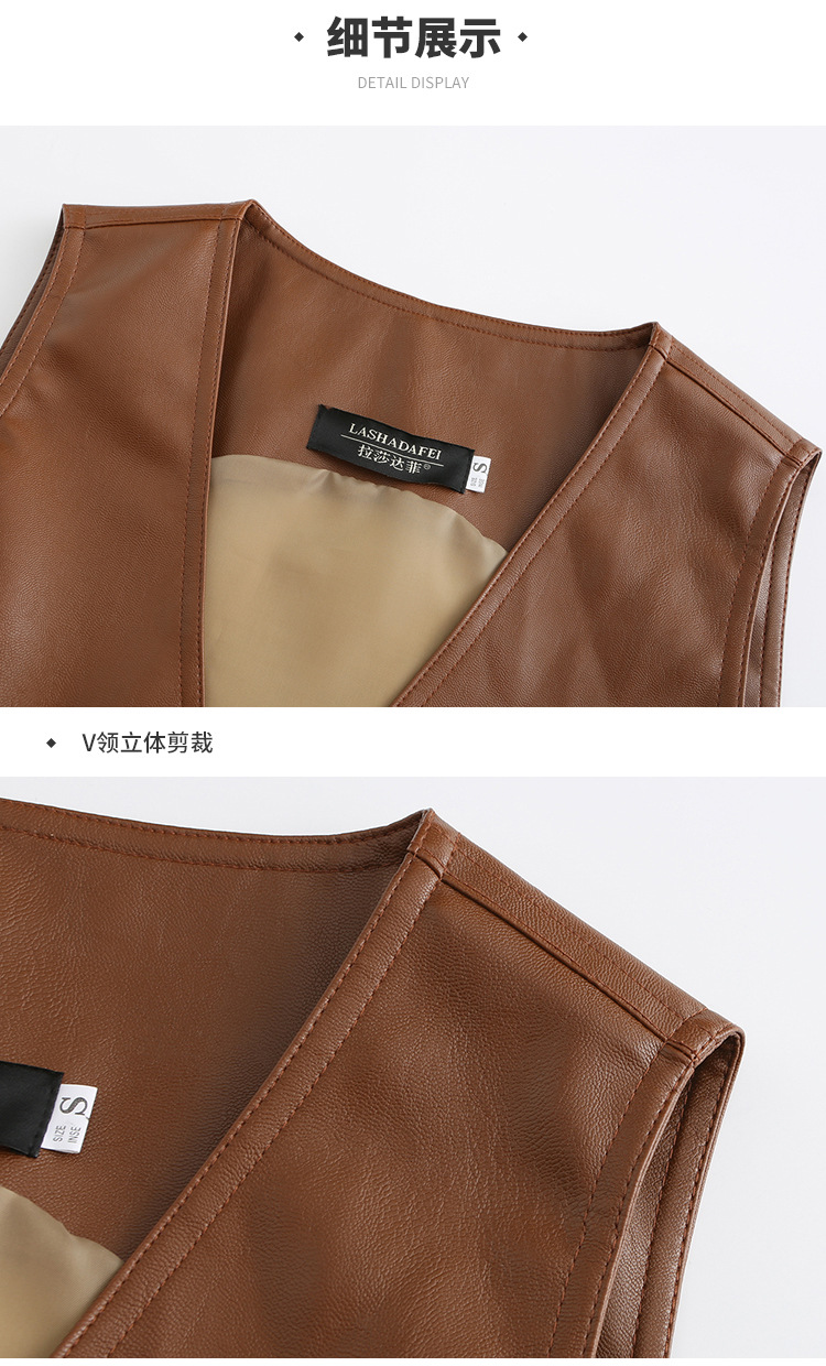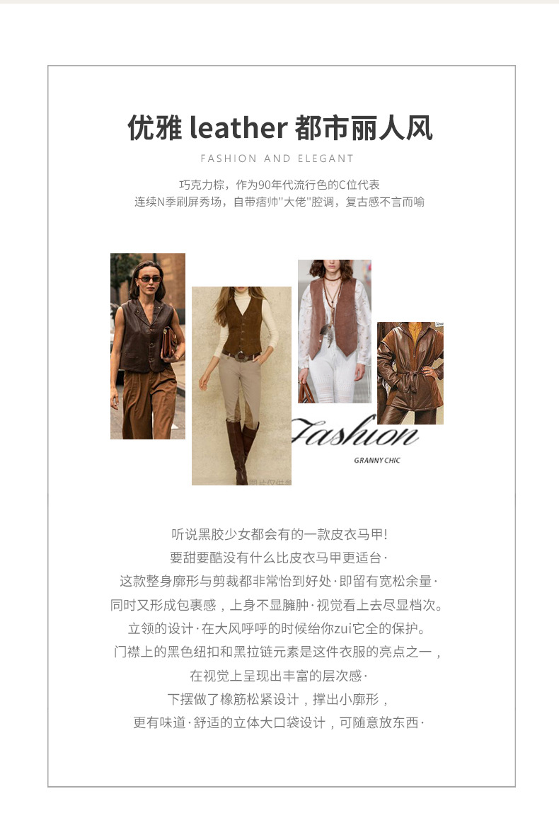 春秋皮马甲女无袖2022年新品复时尚宽松PU马夹女短款棕色春季外搭
