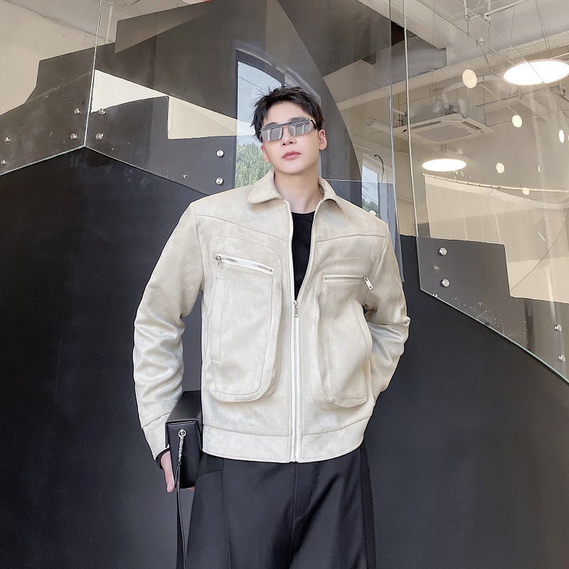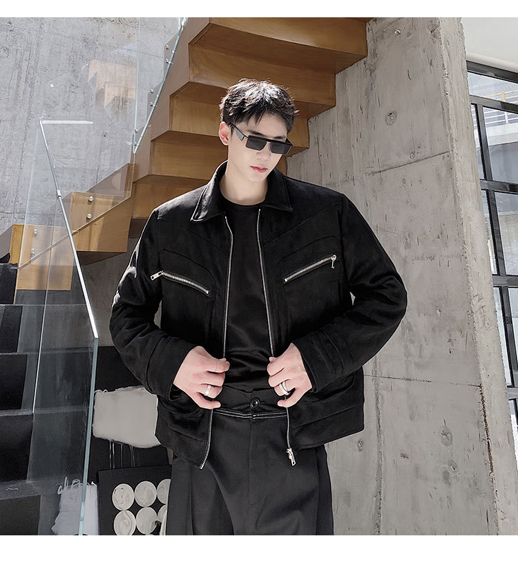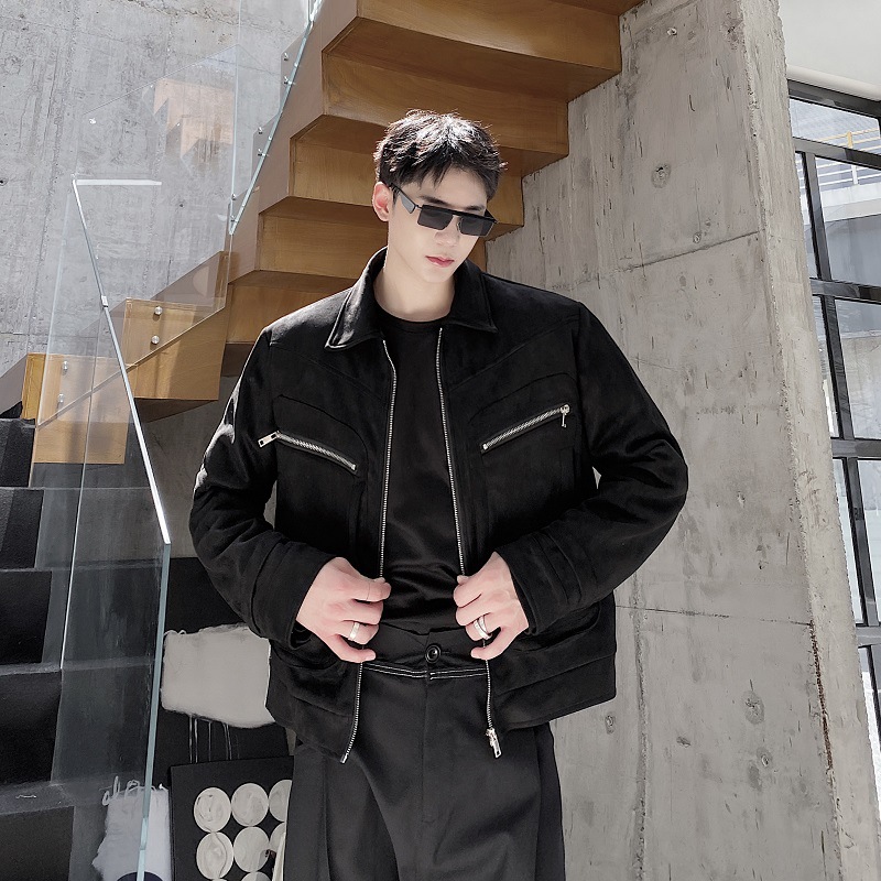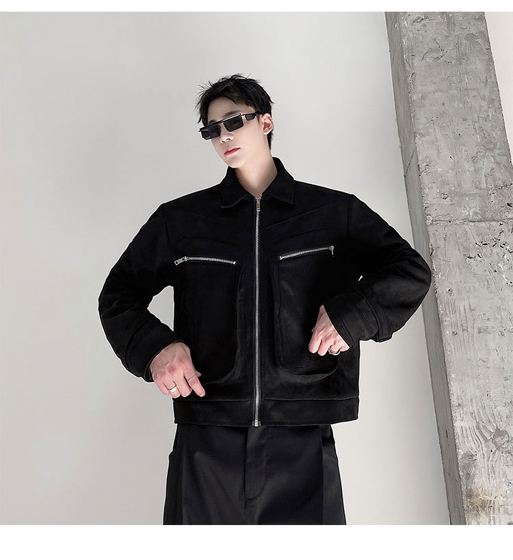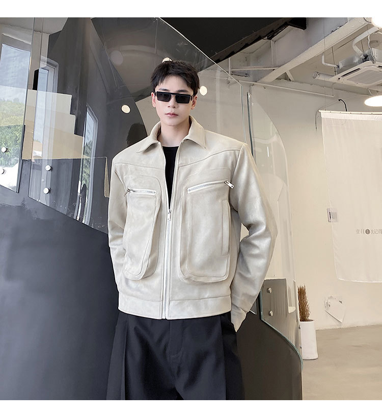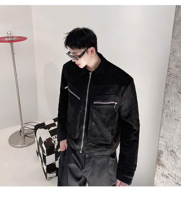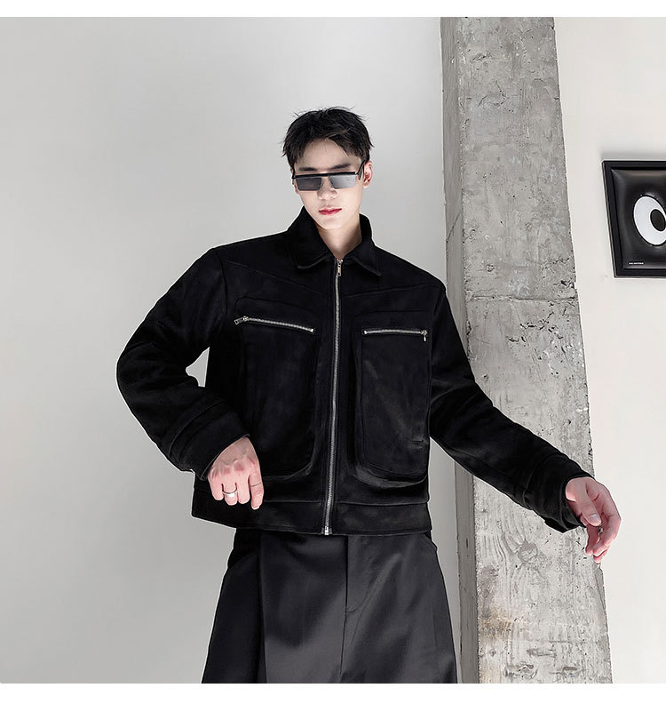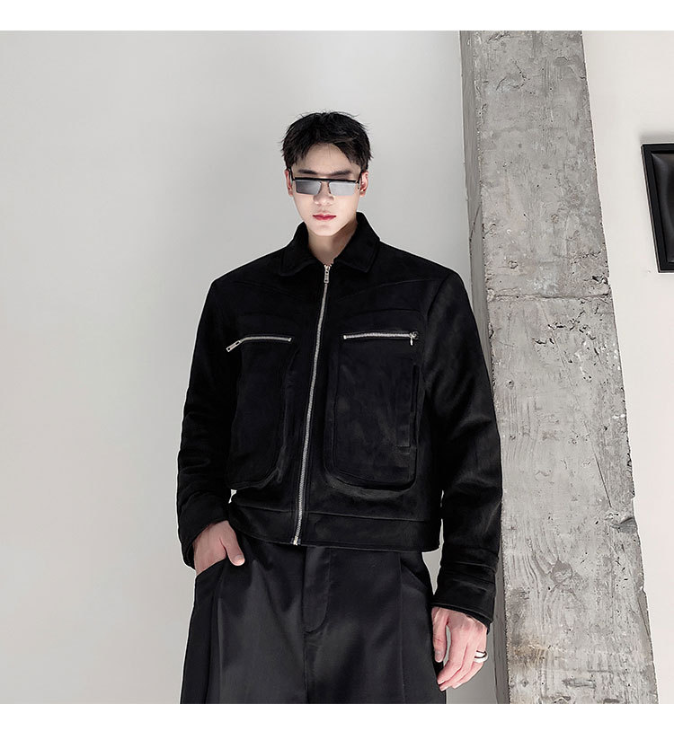 가을과 겨울 트렌디 한 입체 포켓 패딩 사슴 가죽 벨벳 짧은 옷깃 남성 자켓 Ruffian 잘 생긴 빈티지 탑 50905135