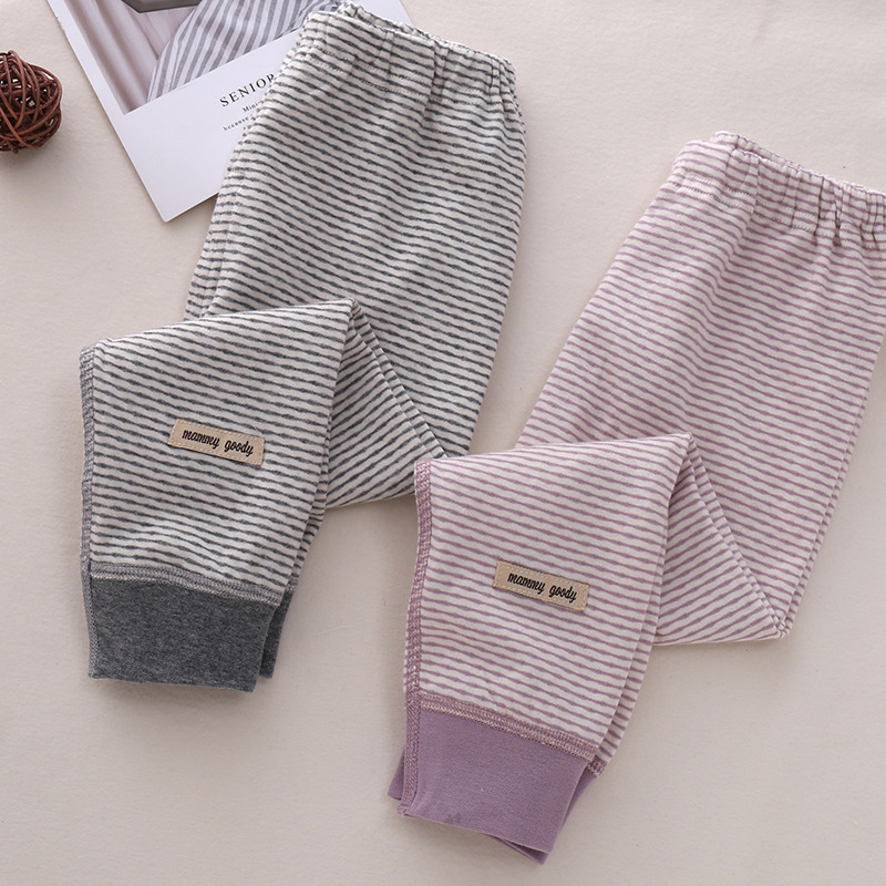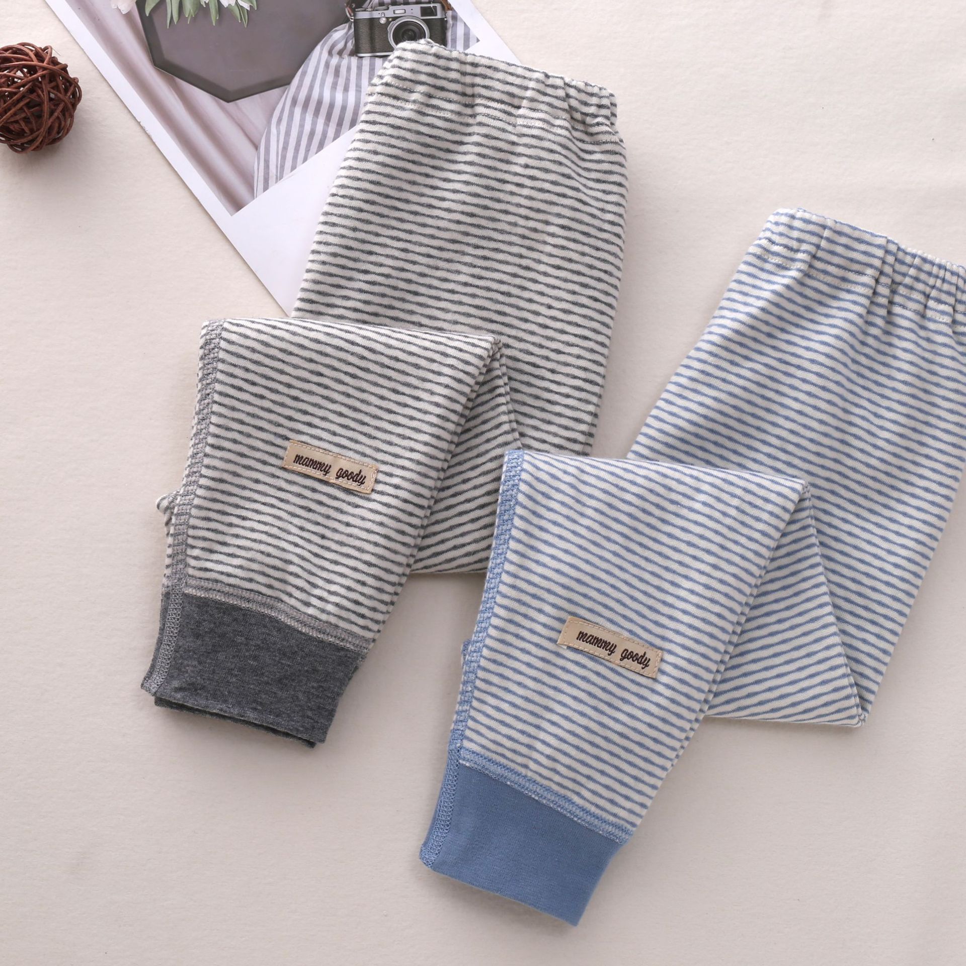 일본식 가을과 겨울 두꺼운 어린이 가을 바지 순면 클래스 아기의 잠옷 바지 소년과 소녀를위한 원사 염색 뼈없는 바닥 따뜻한 바지