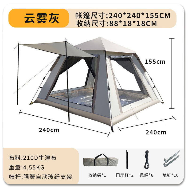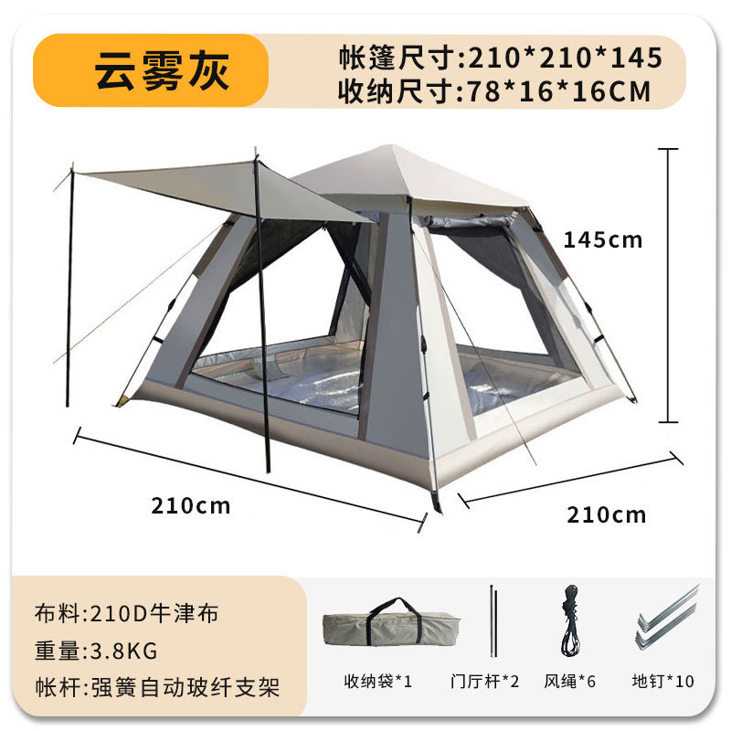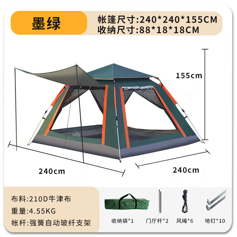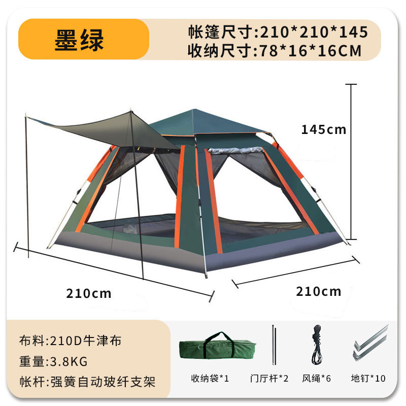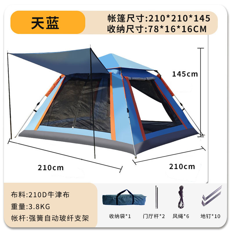 야외 캠핑 텐트 2 도어 및 2 개의 Windows 완전 자동 개통 차양 방풍 캠핑 야외 캠핑 풀 세트 텐트스토어 가기