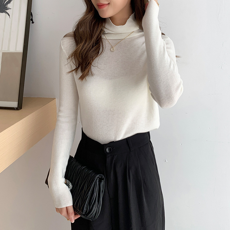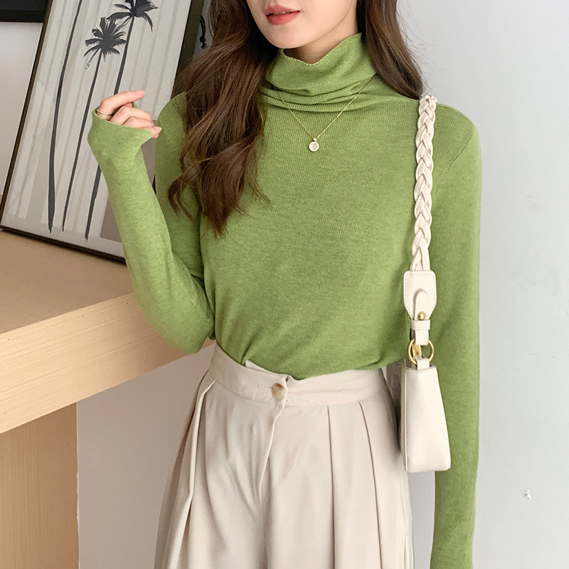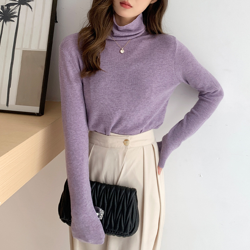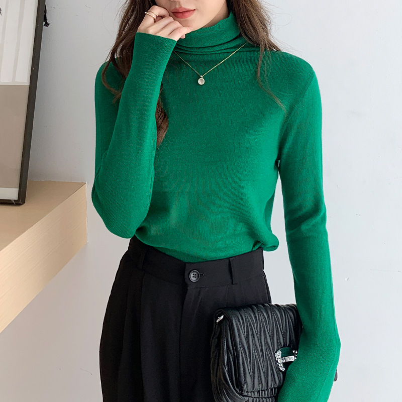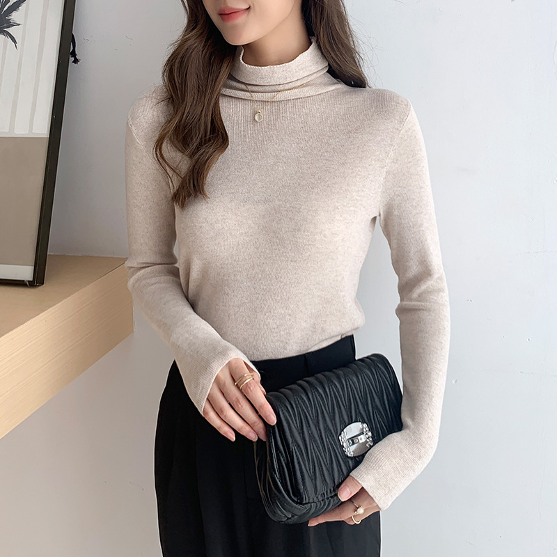 봄 가을 울 베이스 레이어 여성용 2025 신상 하이넥 스웨터 일본 한국 스타일 단색 긴팔 이너웨어 풀오버 여성용스토어 가기