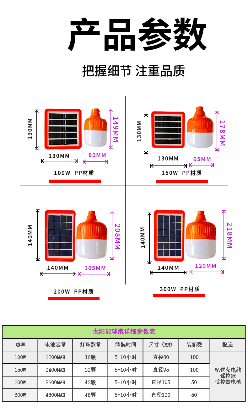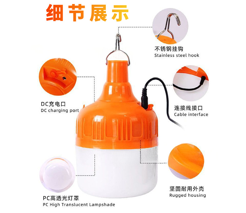 태양광 캠핑등, 에너지 절약형 야외 리모컨 충전식 조명, 야시장 조명, 노점등, 비상용 LED 전구
