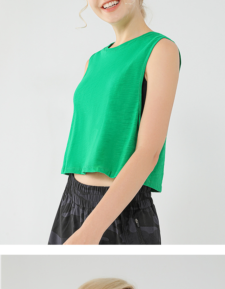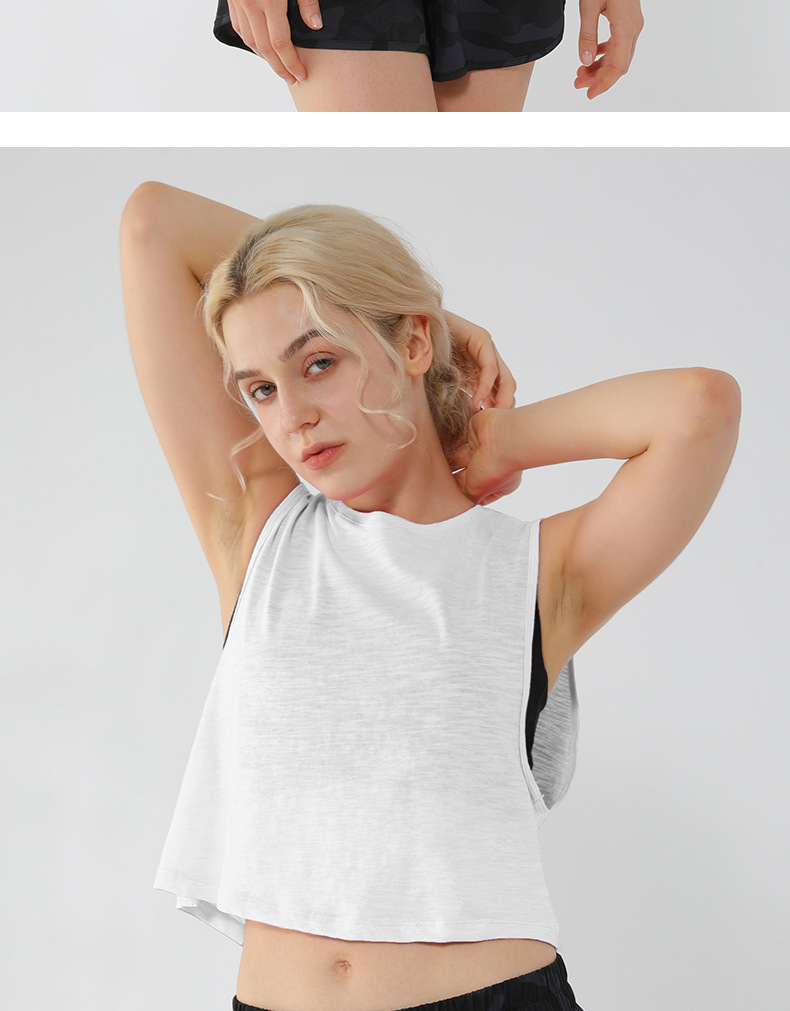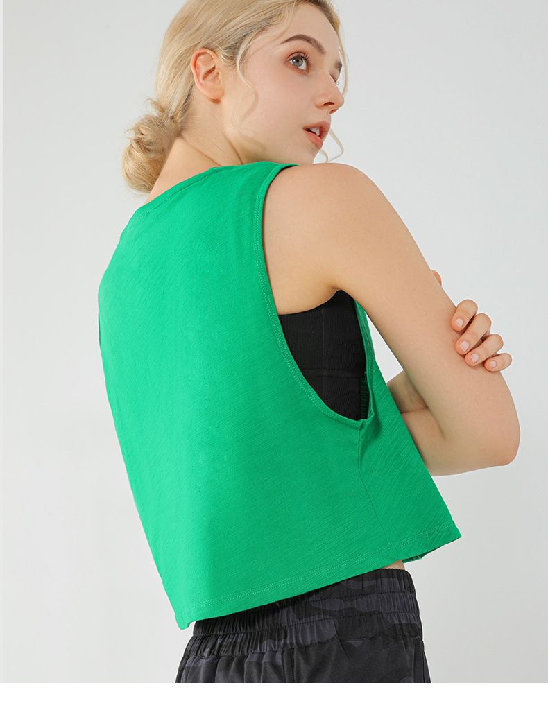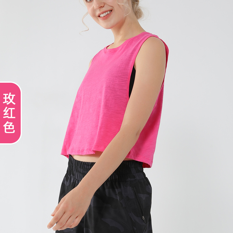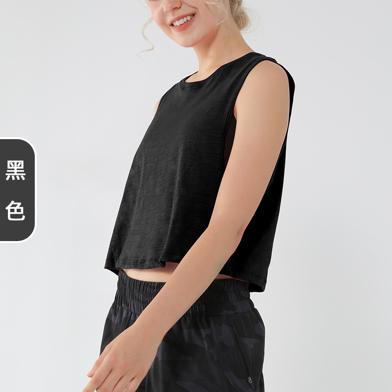아마존 새로운 민소매 요가 조끼 짧은 느슨한 요가 의류 블라우스 순면 통기성 땀 흡수 스포츠 조끼