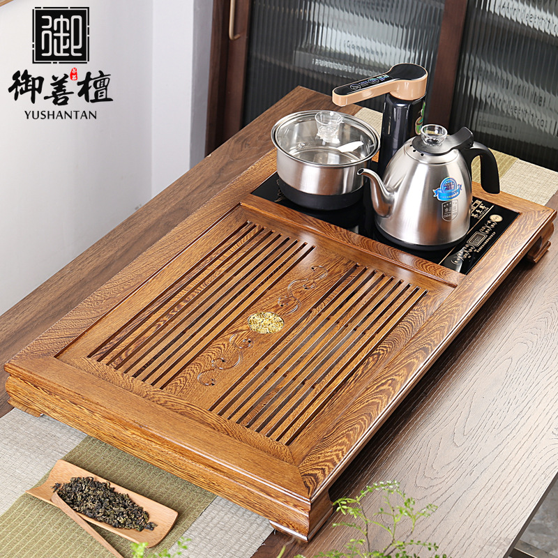 천연 닭 날개 나무 티 트레이 단단한 나무 가정용 통합 티 테이블 현대 간단한 서랍형 티 테이블 쿵푸 차 세트 세트