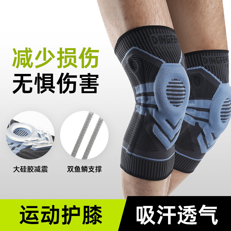 나일론 실리콘 미끄럼 방지 농구 야외 등산 사이클링 달리기 피트니스 보호 장비 가압 니트 스포츠 무릎 패드 도매스토어 가기