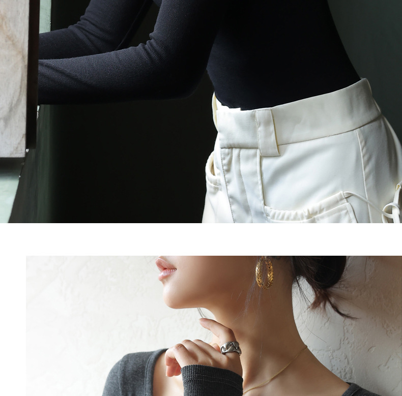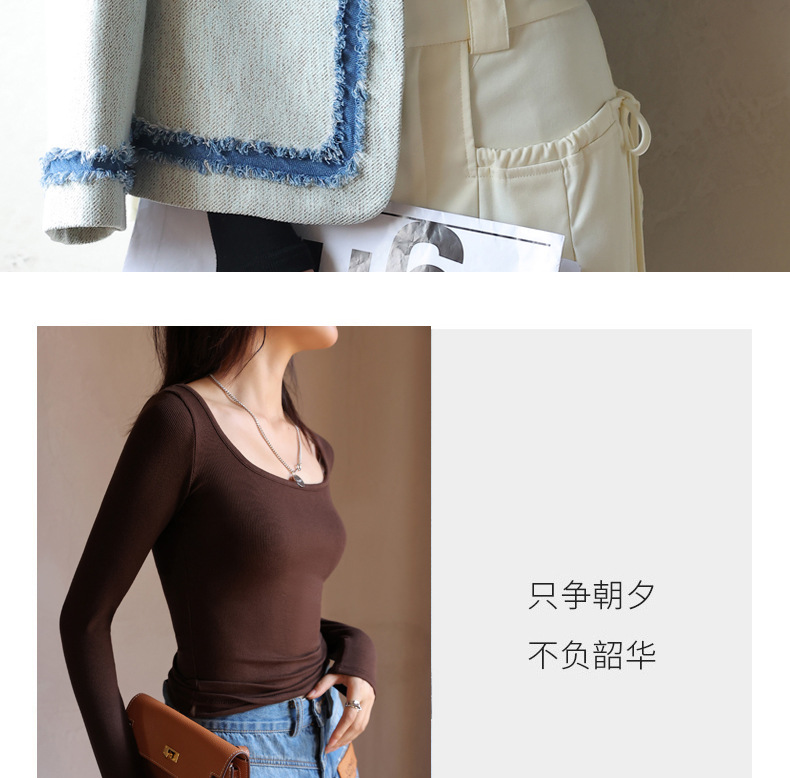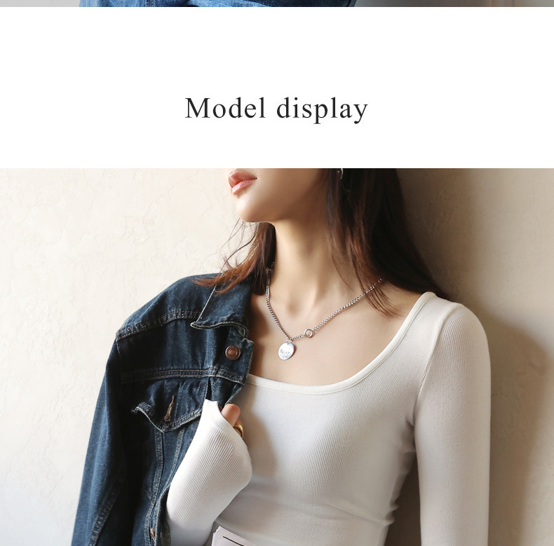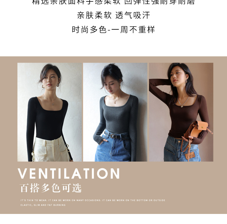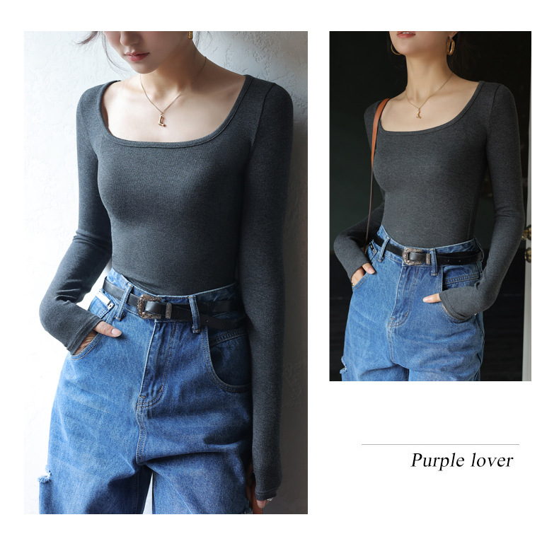 모달 티셔츠 2025 가을 베이직 블랙 로우넥 여성 봄 가을 긴팔 이너웨어 한국 스타일 슬림핏스토어 가기