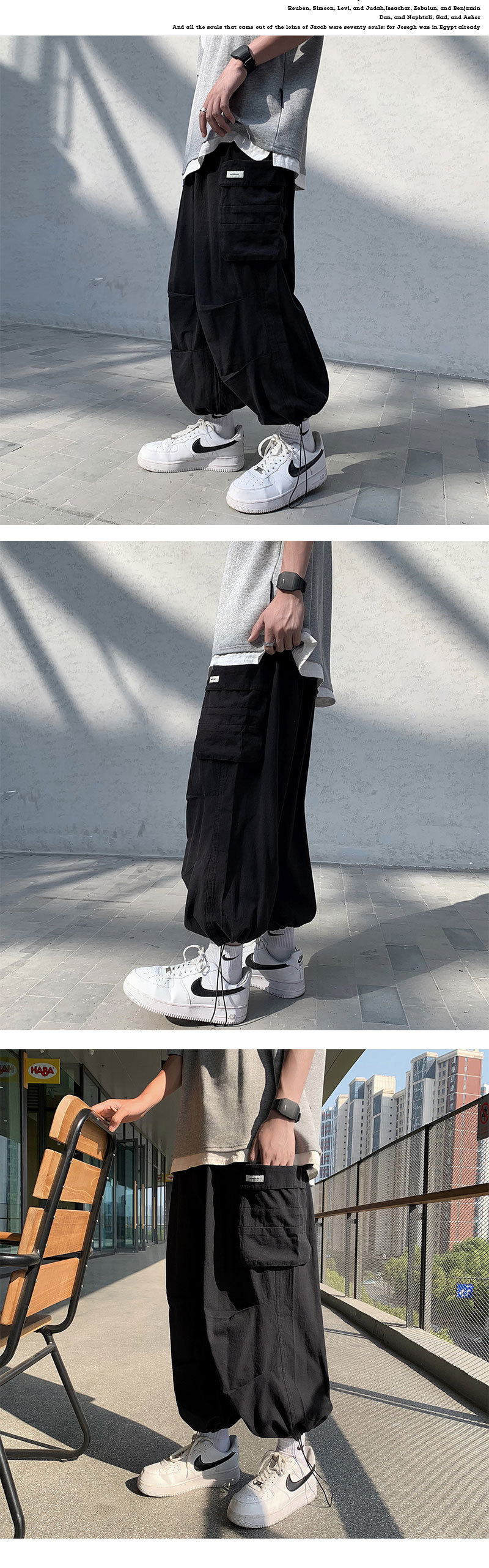카고 바지 남성용 가을 얇은 느슨한 캐주얼 바지 홍콩 스타일 하이 스트리트 트렌디 스트리트 프라이 잘생긴 발목 길이 바지스토어 가기