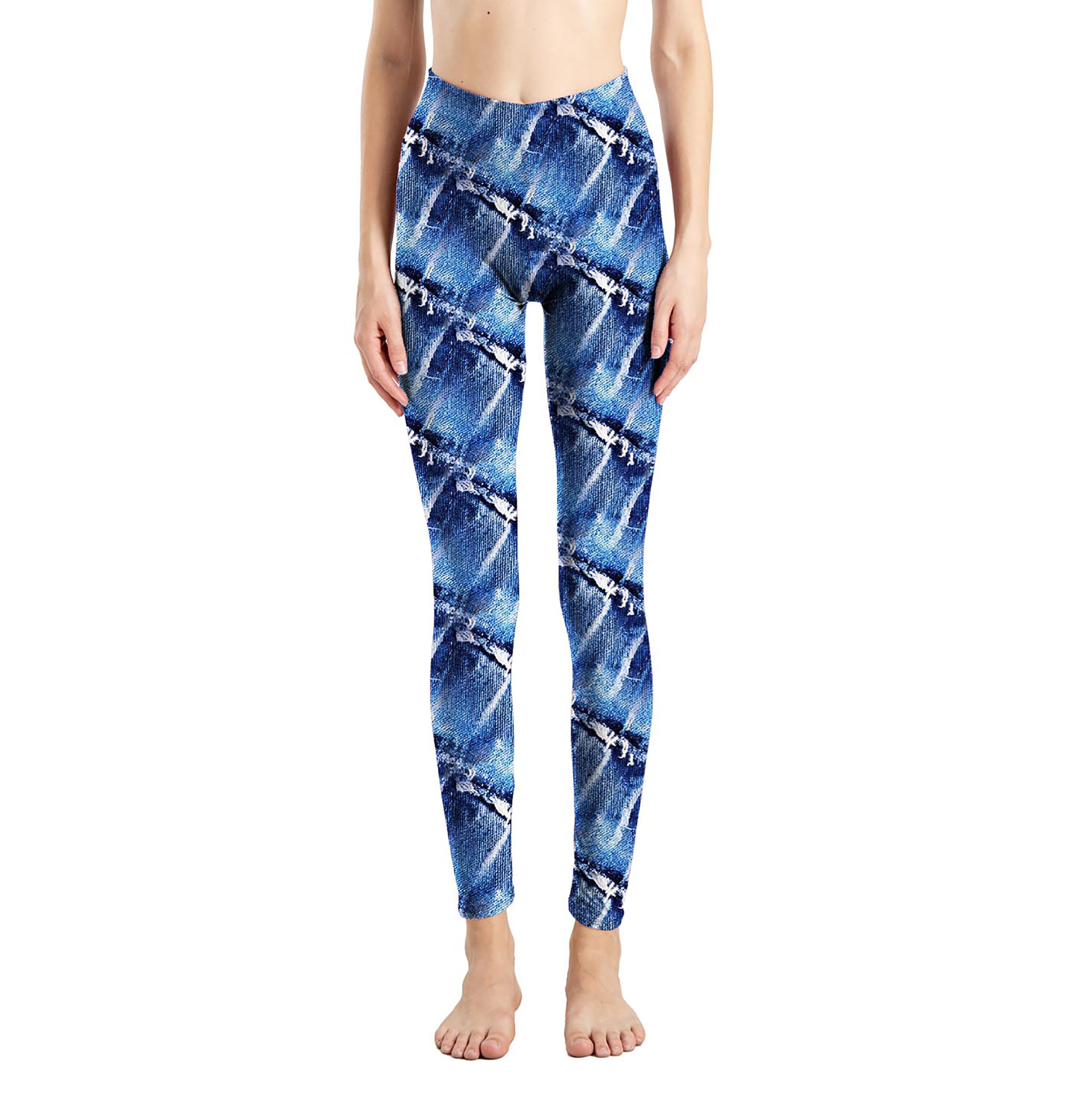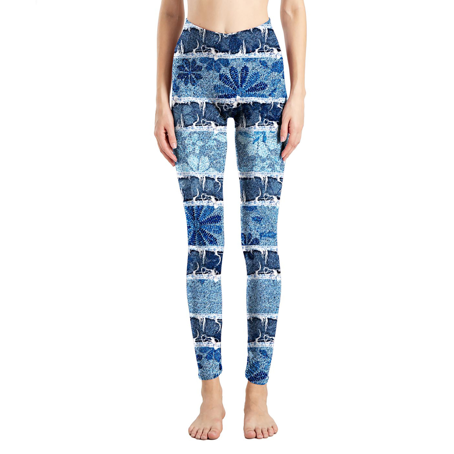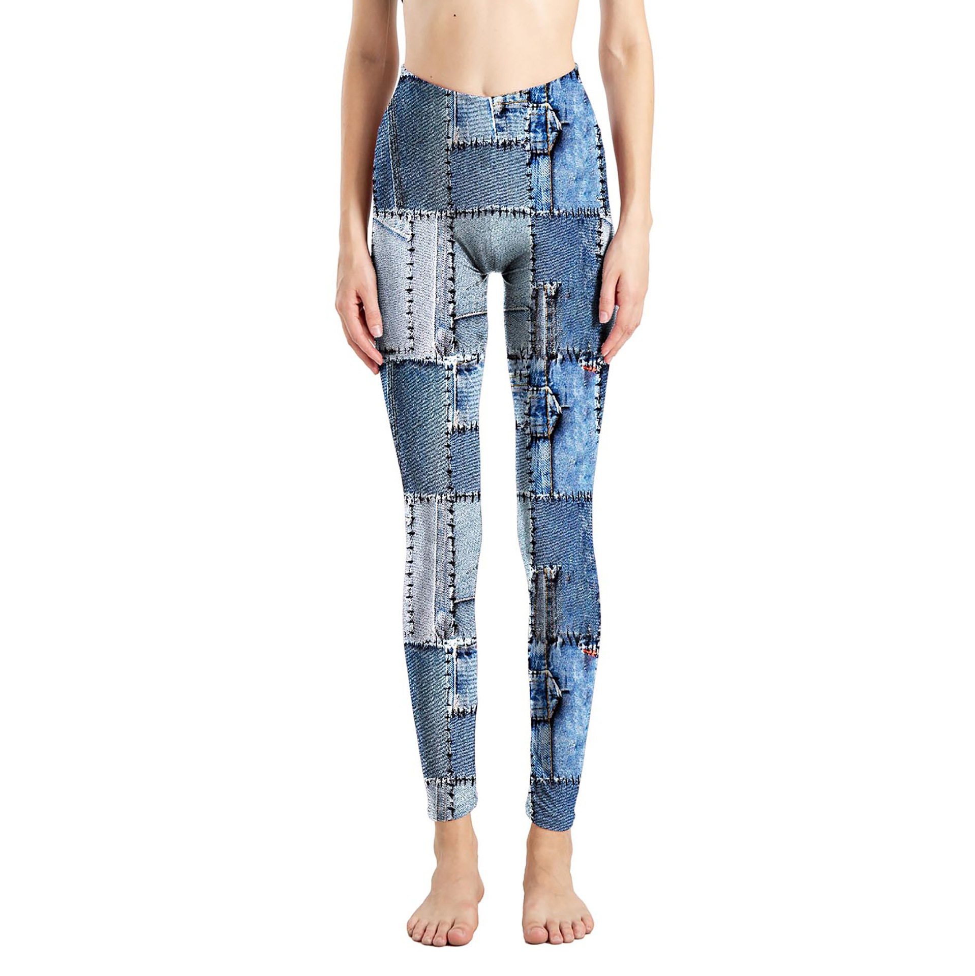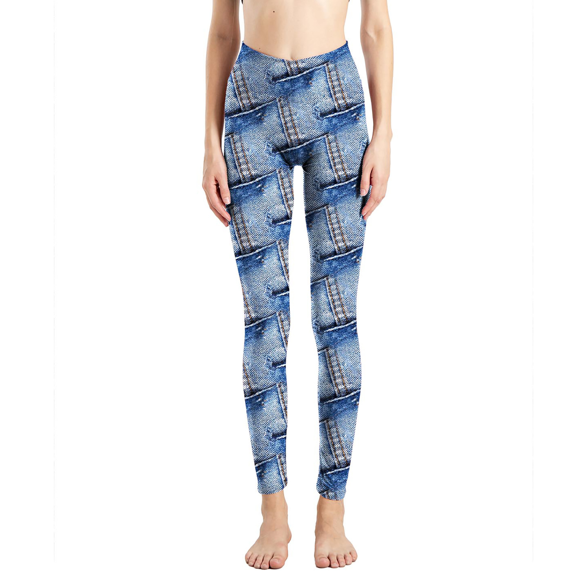 국경 간 새로운 모조 데님 인쇄 된 피부 친화적 인 꽉 자른 바지 여성용 겉옷 레깅스 진 레깅스스토어 가기