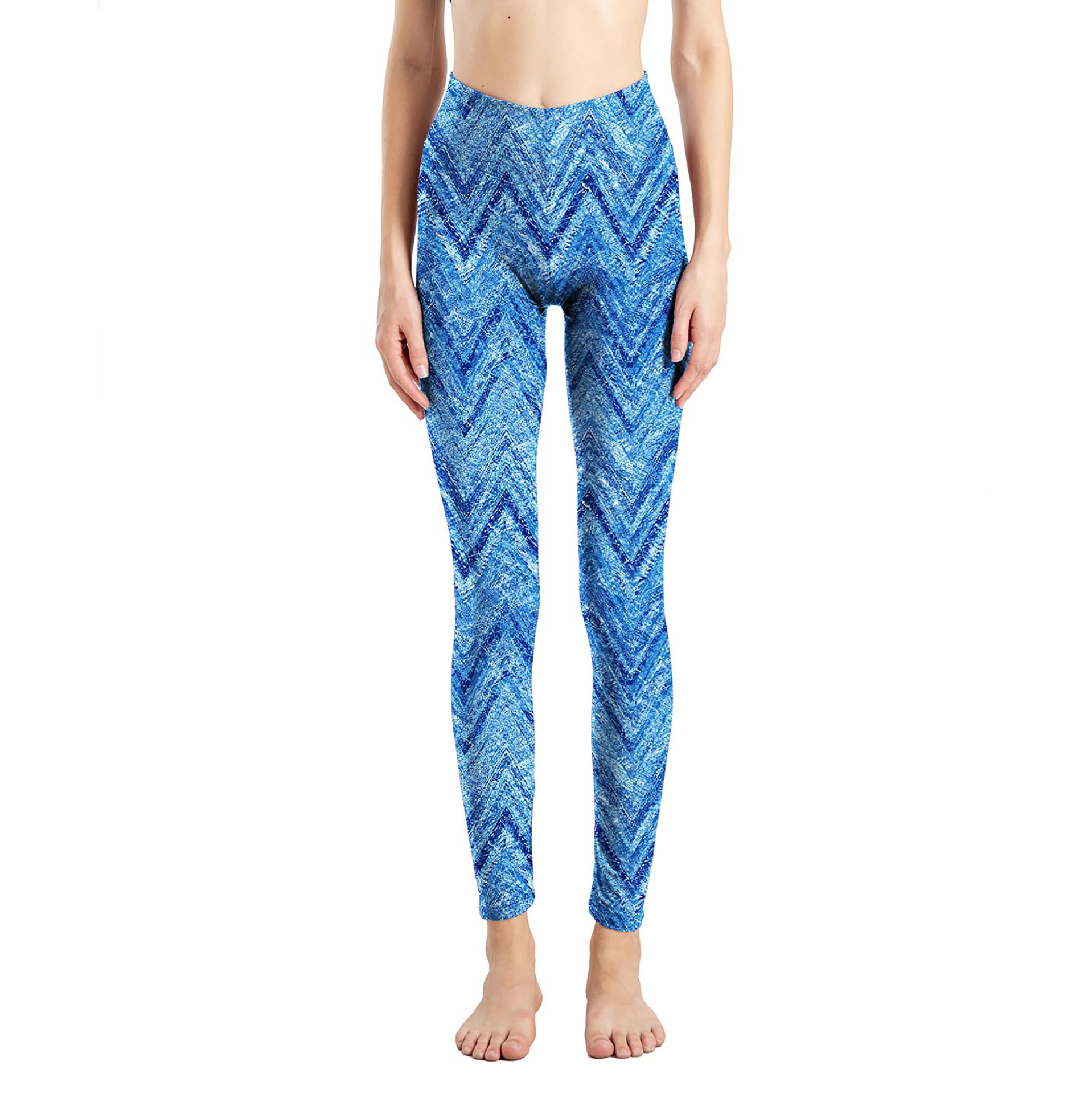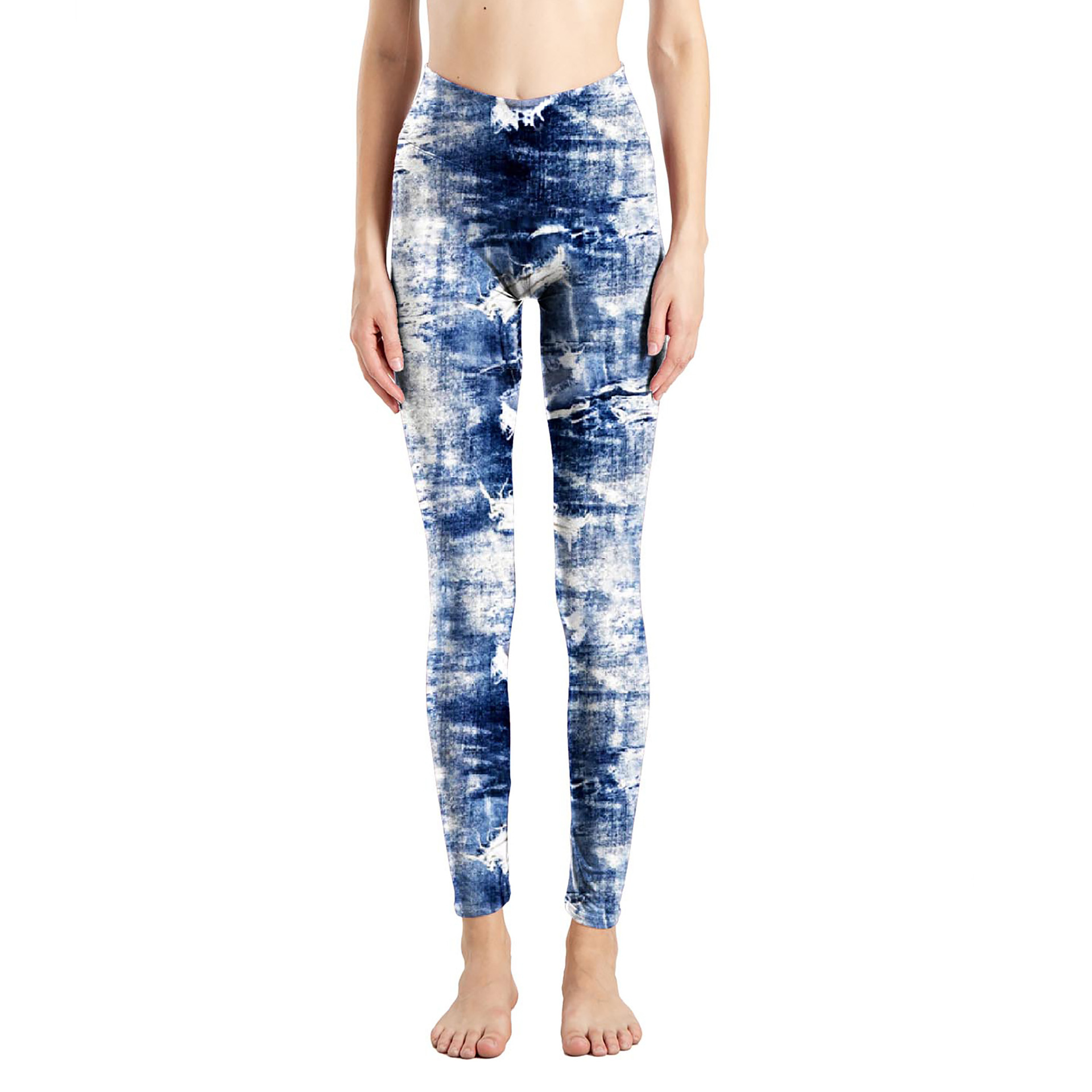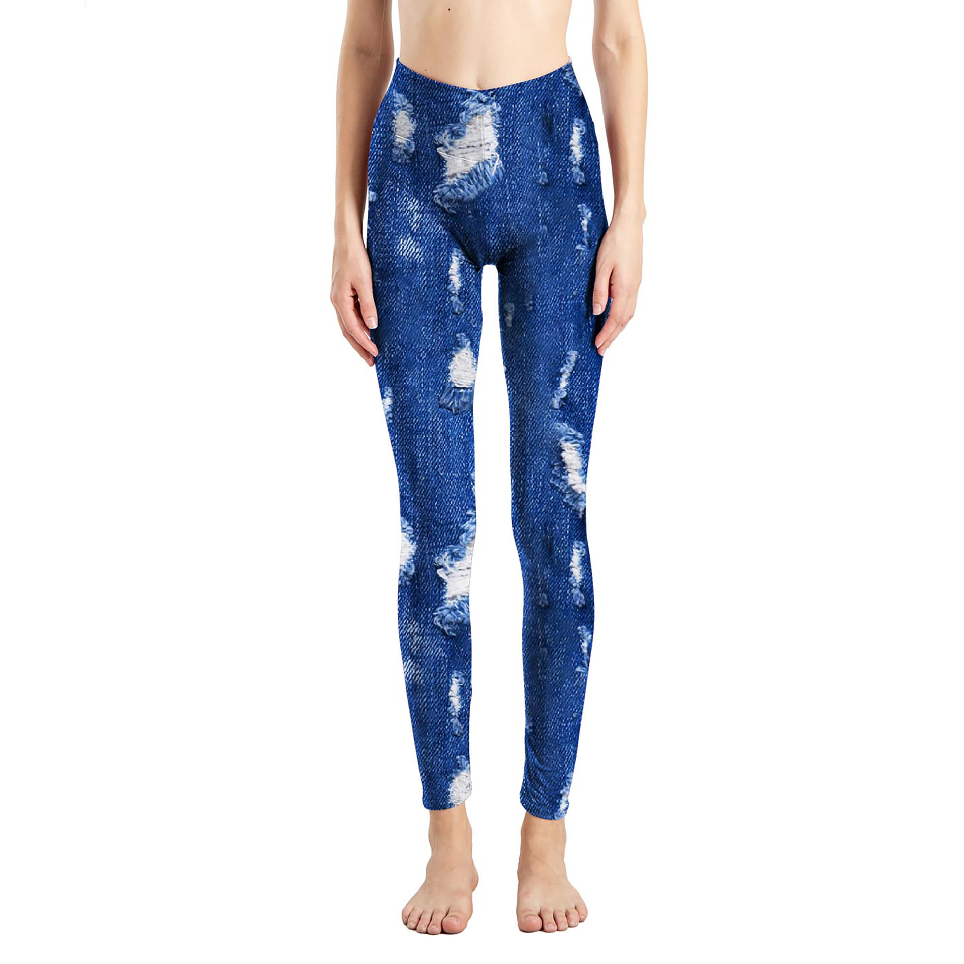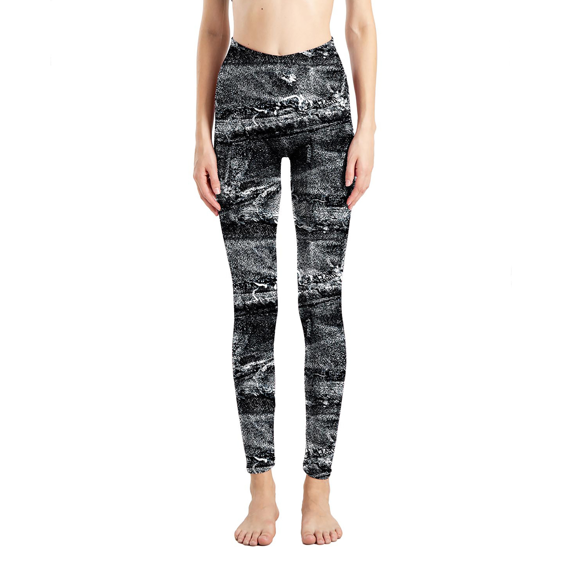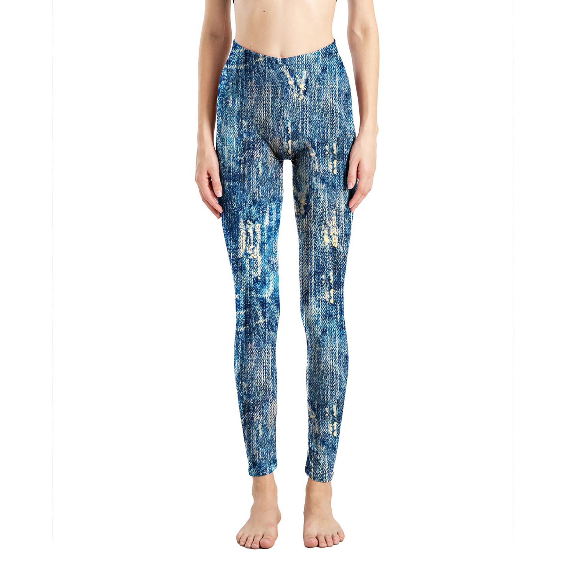 국경 간 새로운 모조 데님 인쇄 된 피부 친화적 인 꽉 자른 바지 여성용 겉옷 레깅스 진 레깅스스토어 가기