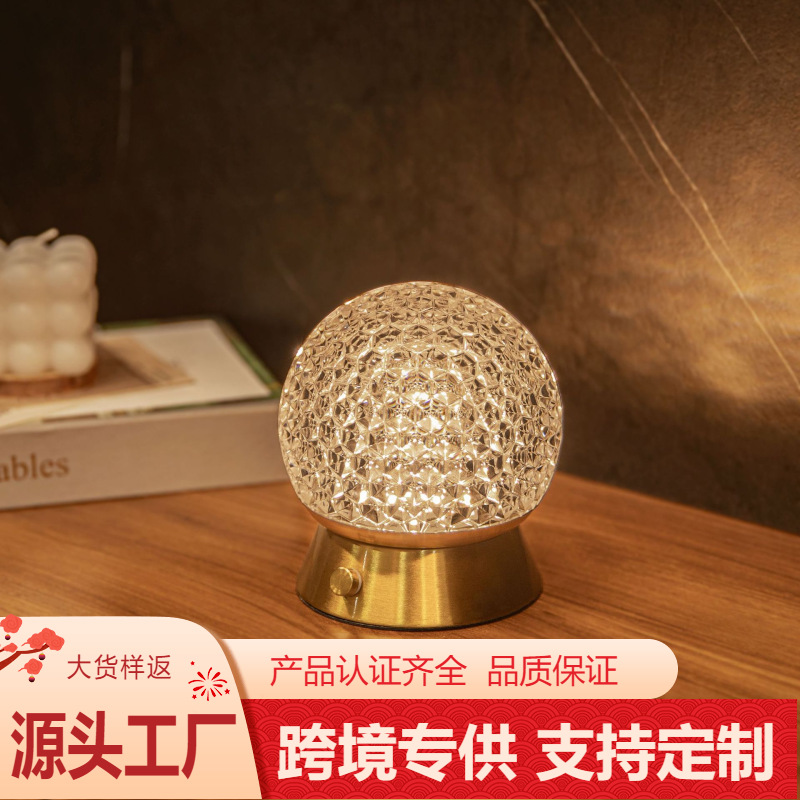 크로스 보더 새로운 led 크리스탈 볼 다이아몬드 테이블 램프 스페인어 로맨틱 따뜻한 USB 충전식 테이블 램프 침대 옆 야간 조명