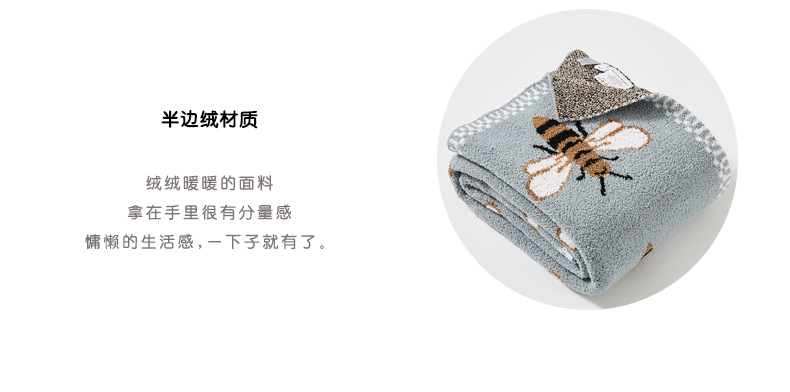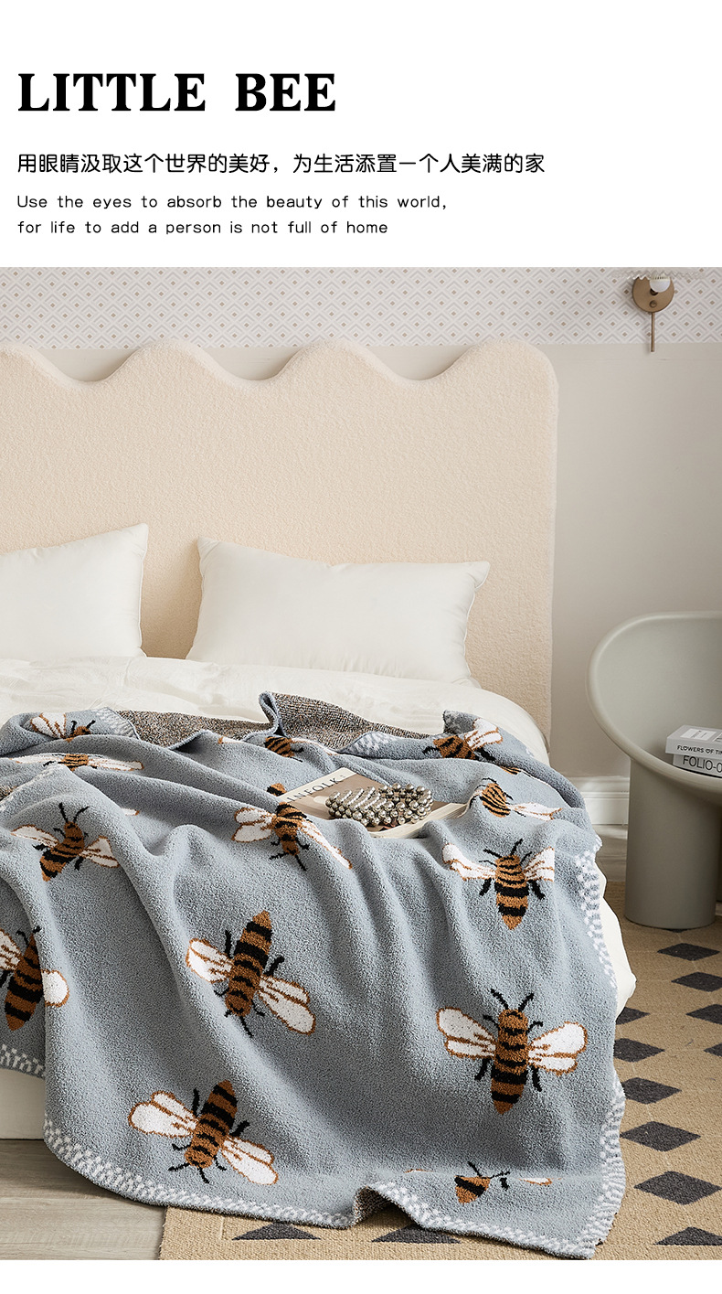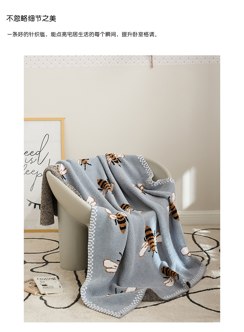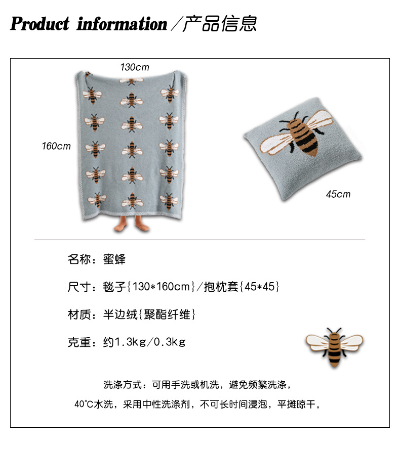 Ruijing 섬유 공장 도매 슈퍼 화재 꿀벌 담요 클래스 A 하프 벨벳 니트 실 담요 소파 담요 베개