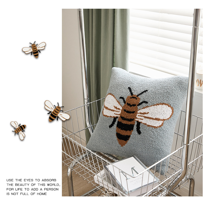 Ruijing 섬유 공장 도매 슈퍼 화재 꿀벌 담요 클래스 A 하프 벨벳 니트 실 담요 소파 담요 베개스토어 가기