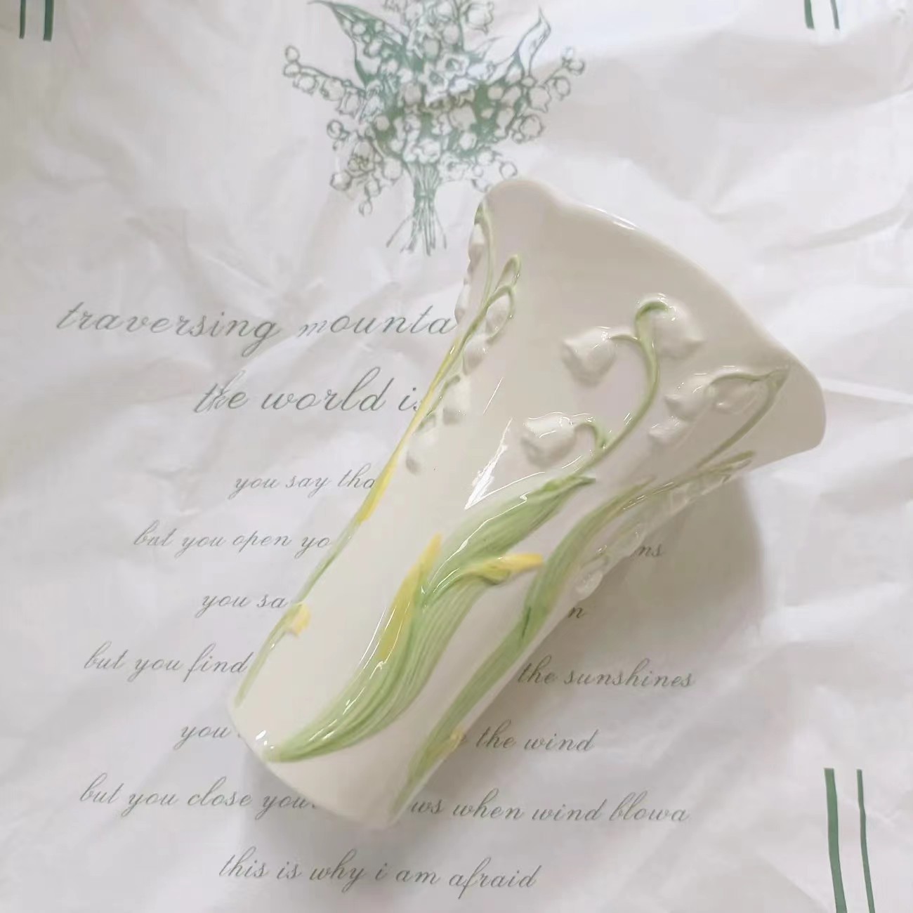 프랑스 스타일 크림 스타일 세라믹 꽃병 큰 직경 플레어 손으로 그린 백합 꽃병 수경 꽃병