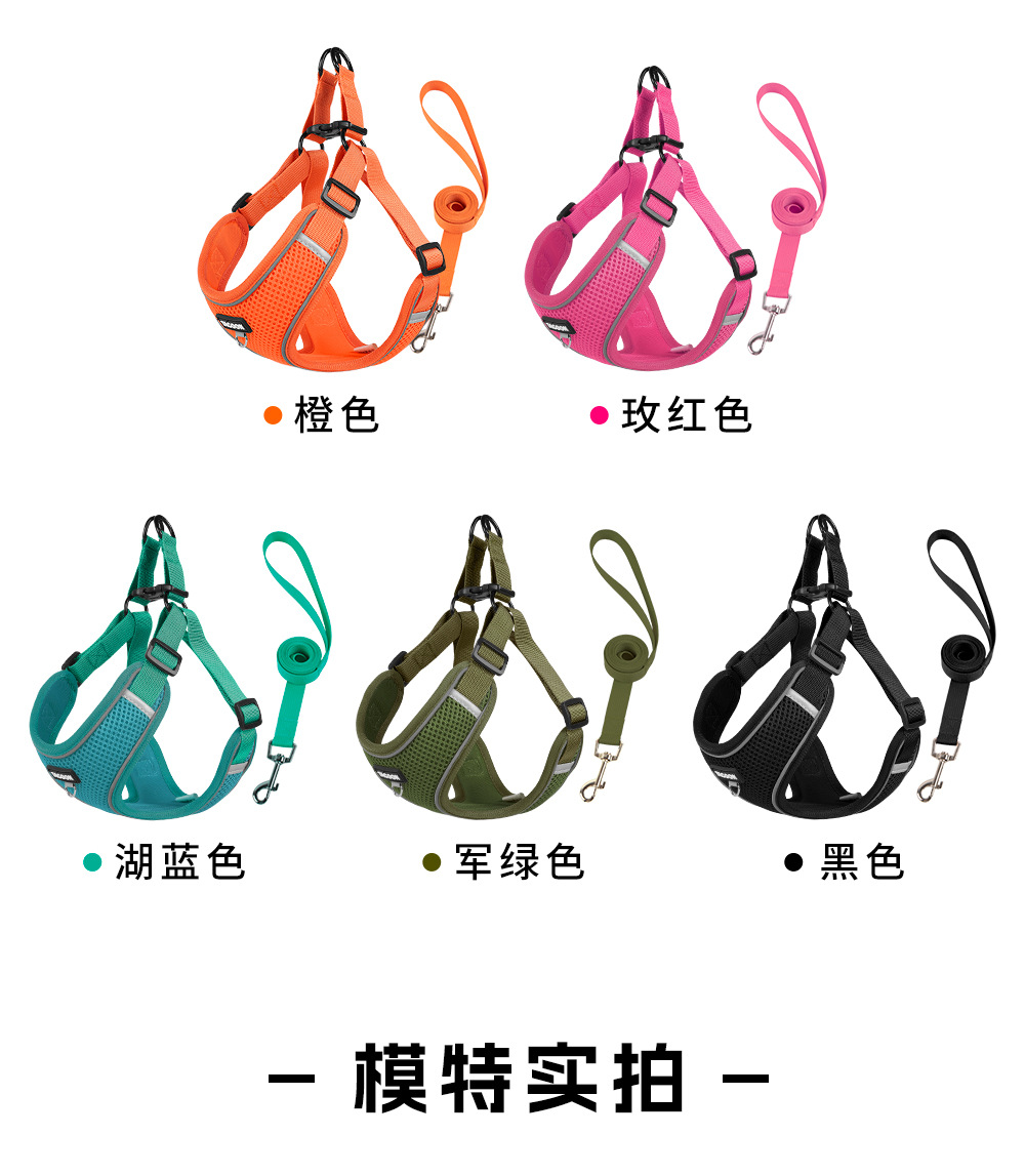 제조업체 애완동물 하네스 신형 메쉬 반사견줄 소형 및 중형견 조끼형 강아지 목줄 도매