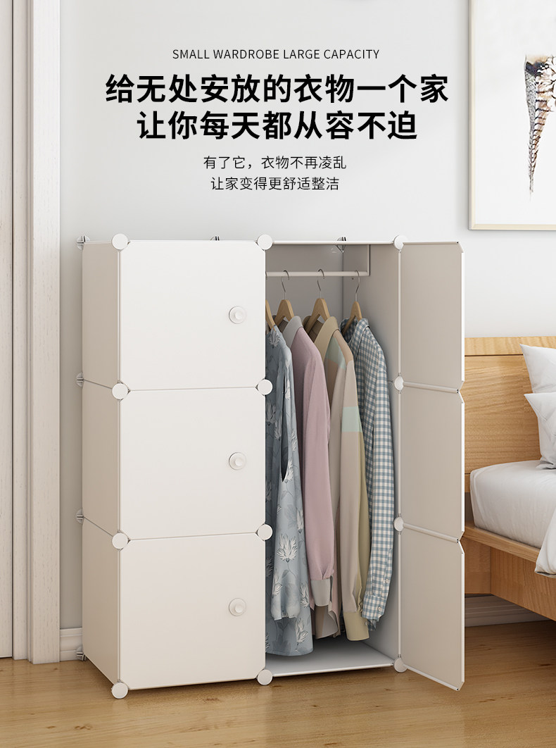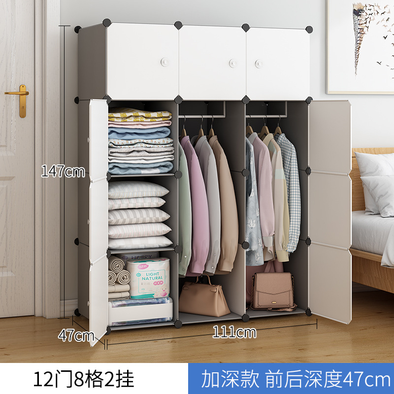 간단한 옷장 렌탈룸 침실 수납 캐비닛 기숙사 단일 플라스틱 보관 캐비닛 작은 아파트 가정용 천 옷장스토어 가기