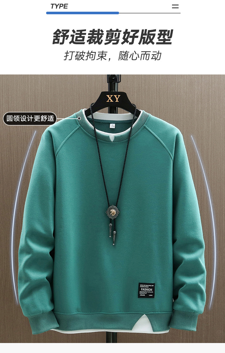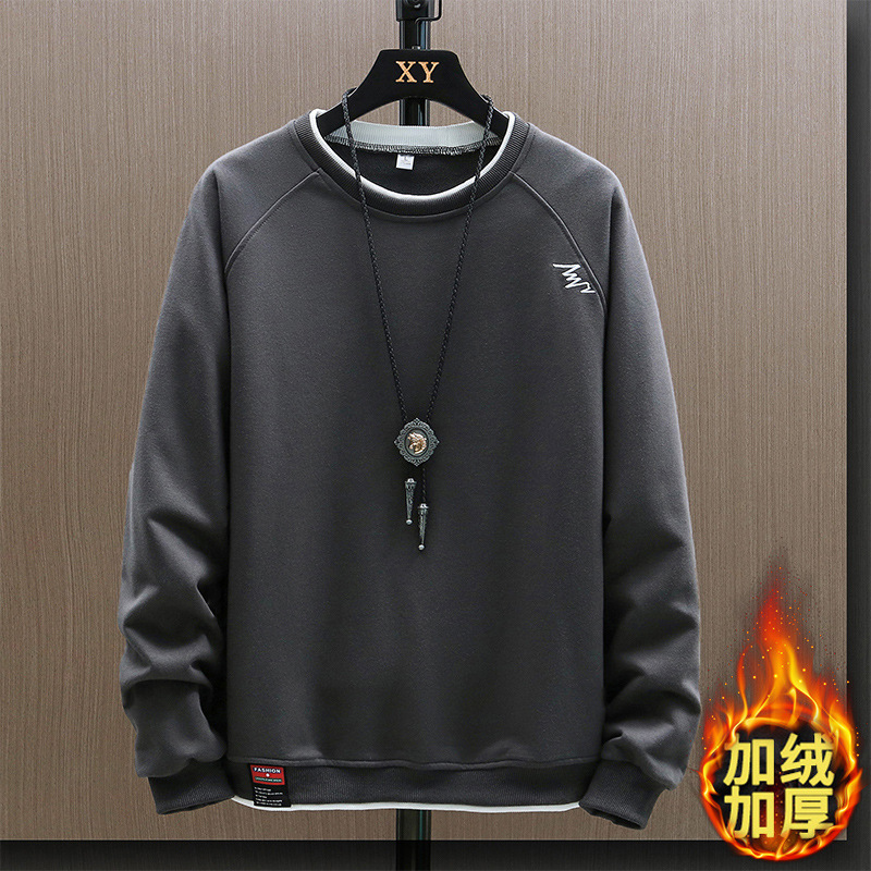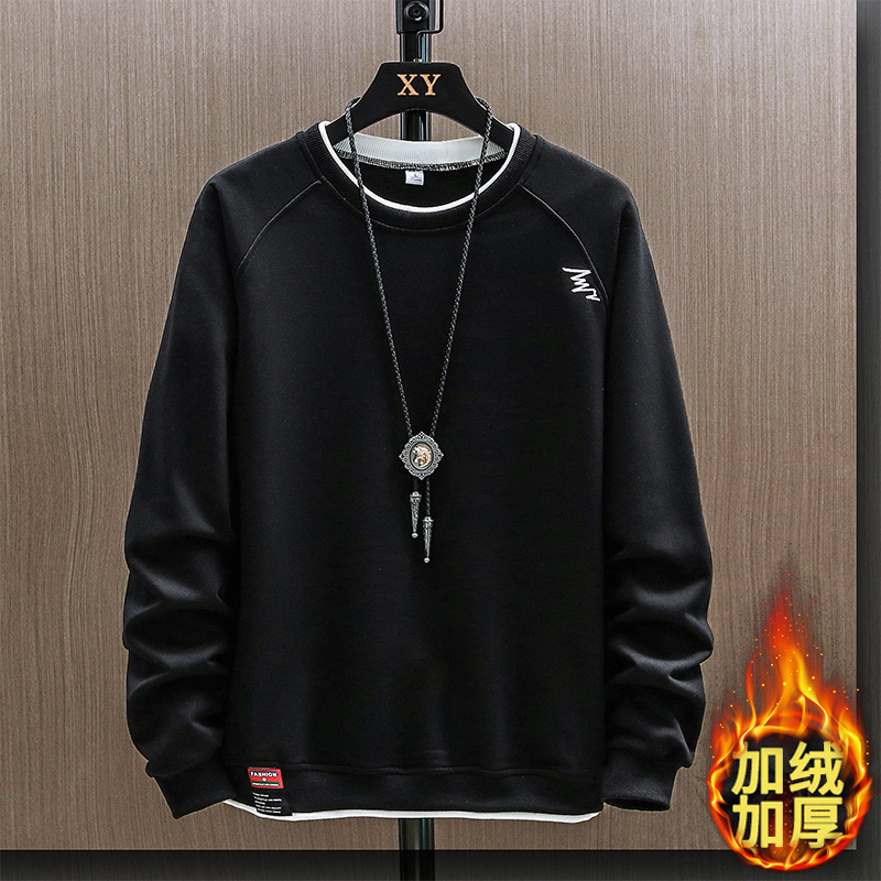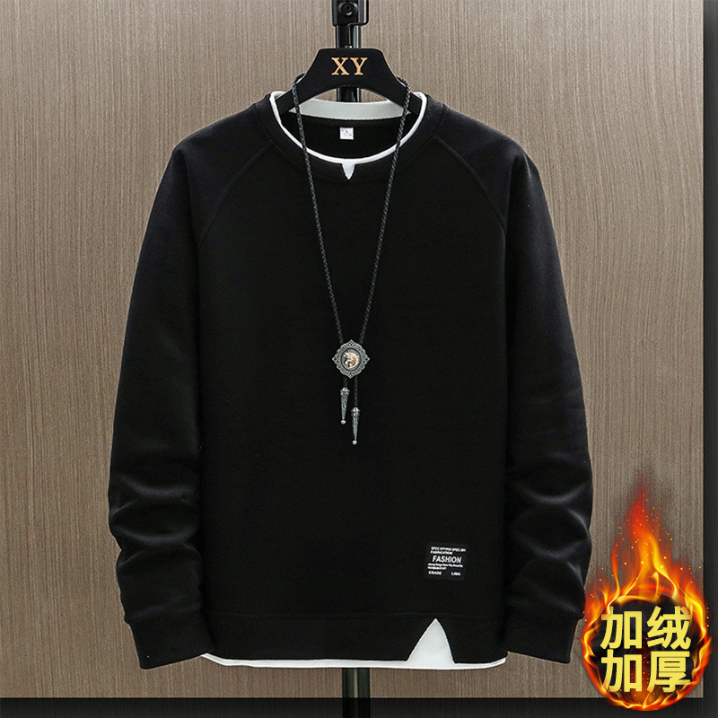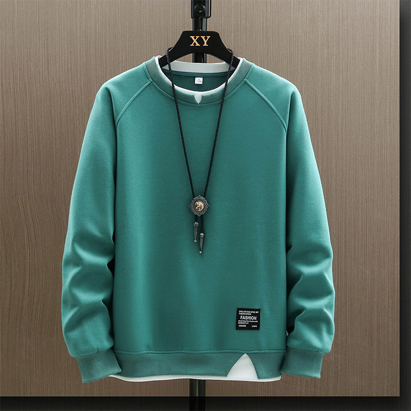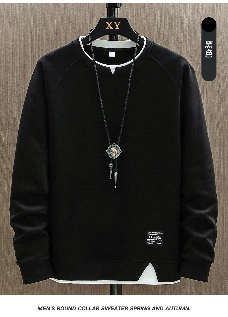 2023 새로운 가을 남자의 가짜 투피스 라운드 넥 스웨터 봄과 가을 유행 긴팔 티셔츠 탑 의류 코트