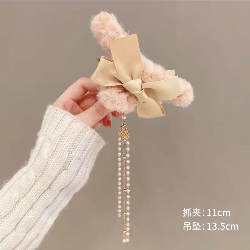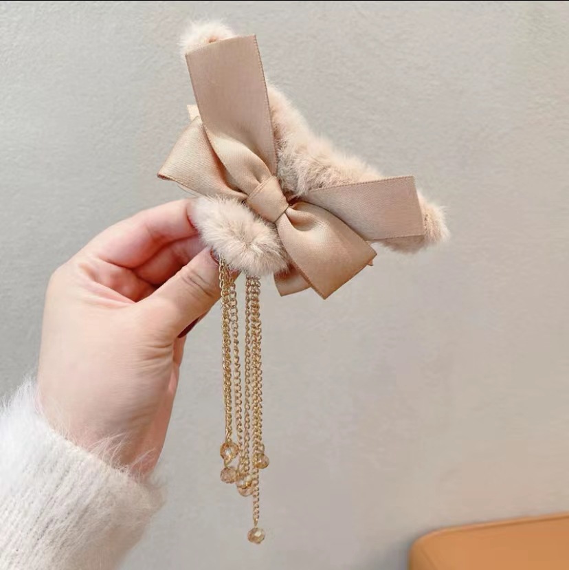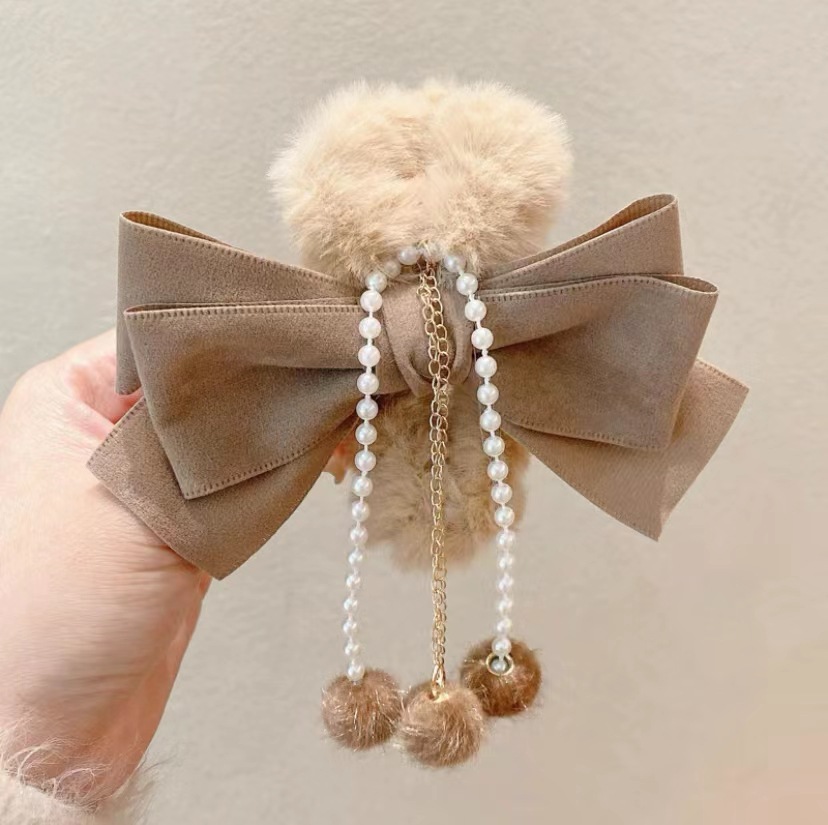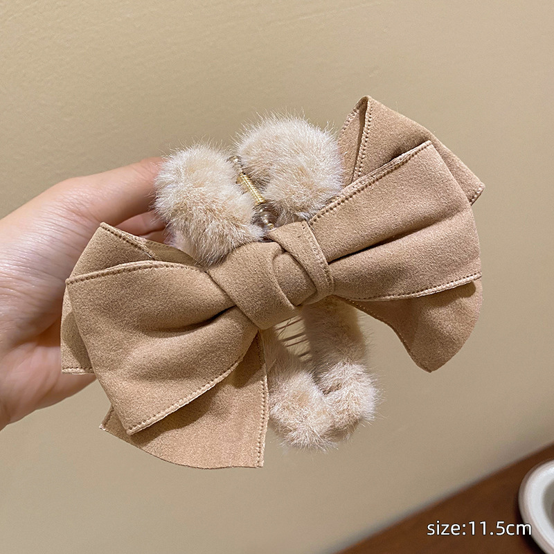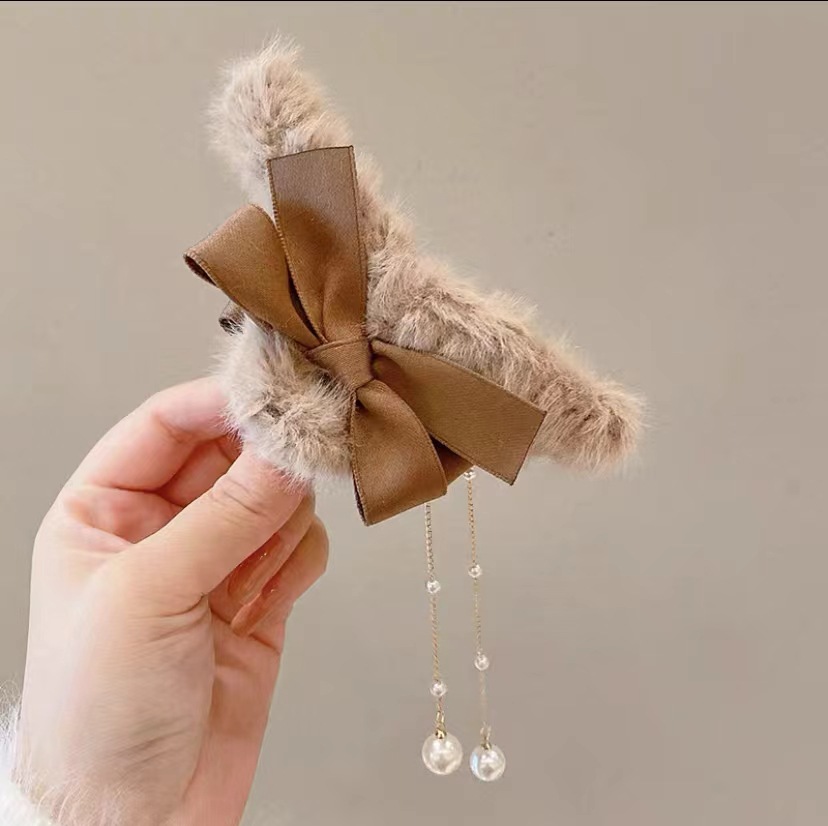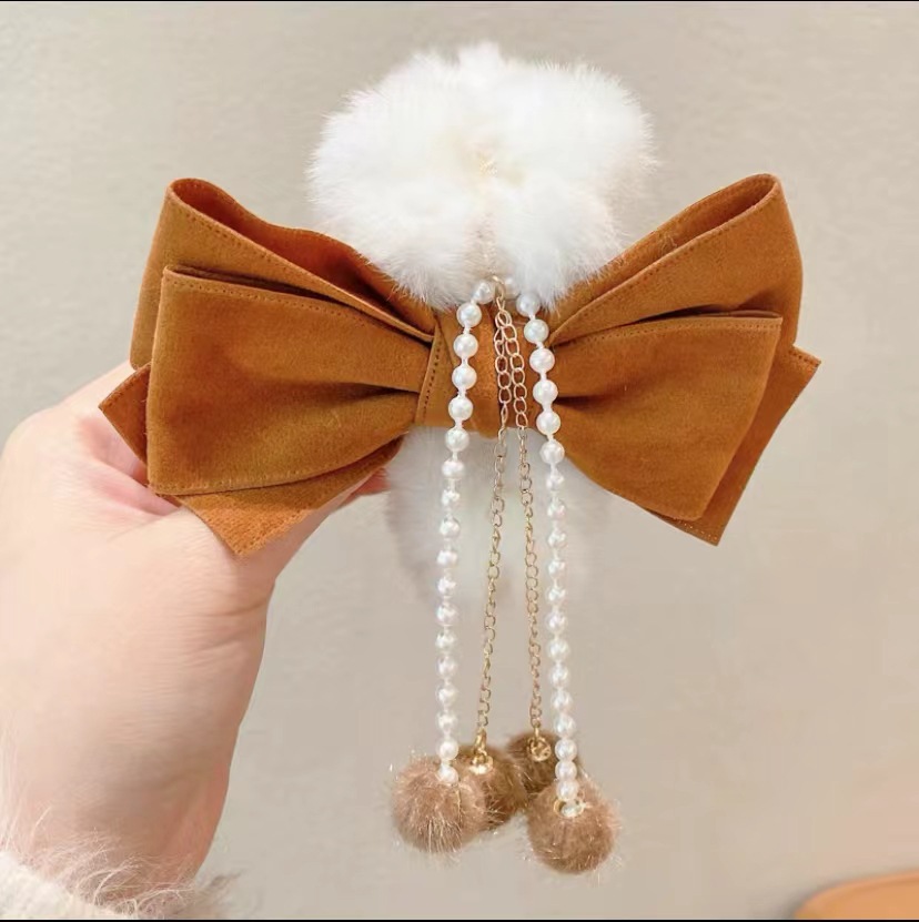 • ZJ001-1 # 다크 브라운 큰 활 술 헤어 볼 캐치 클립