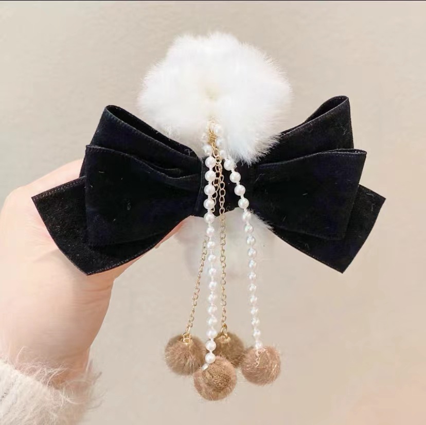 • ZJ001-4 # 블랙 큰 활 술 헤어 볼 캐치 클립