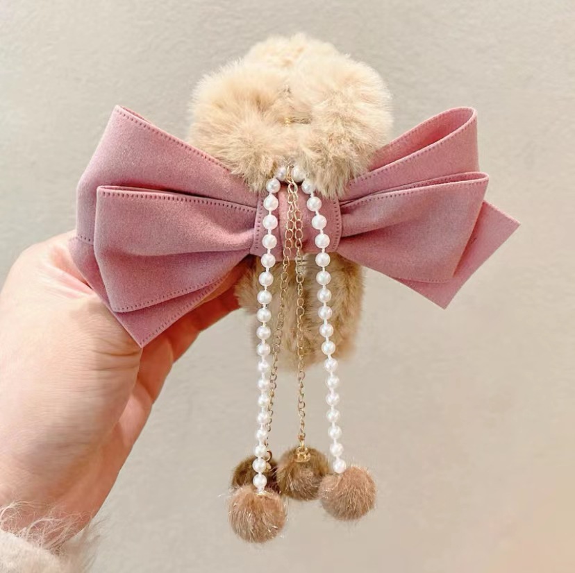 • ZJ001-2 # 장미 핑크 큰 활 술 모피 공 캐치 클립