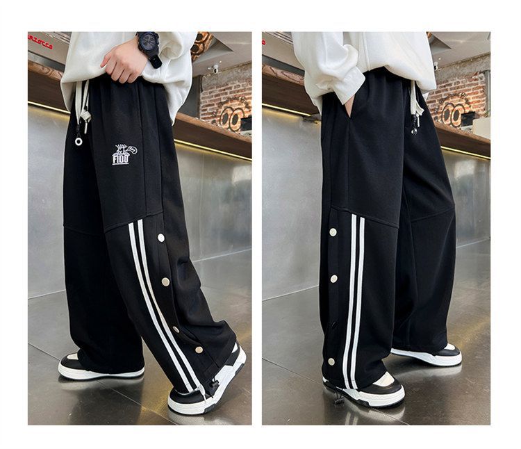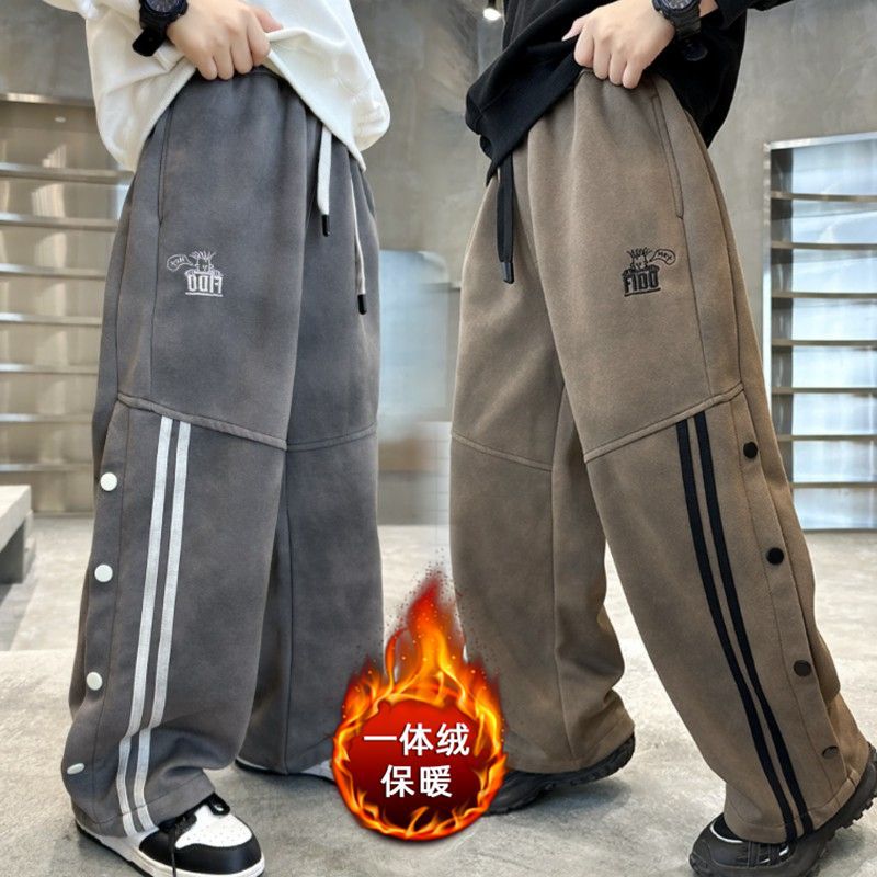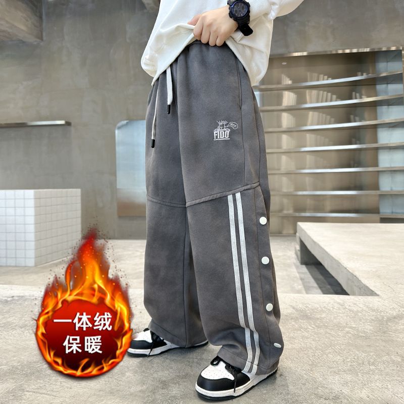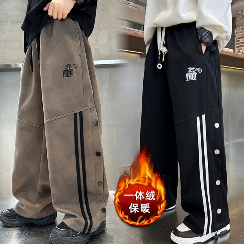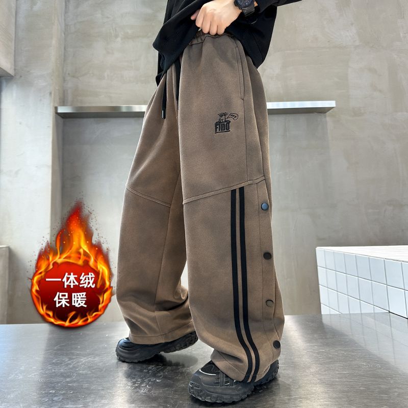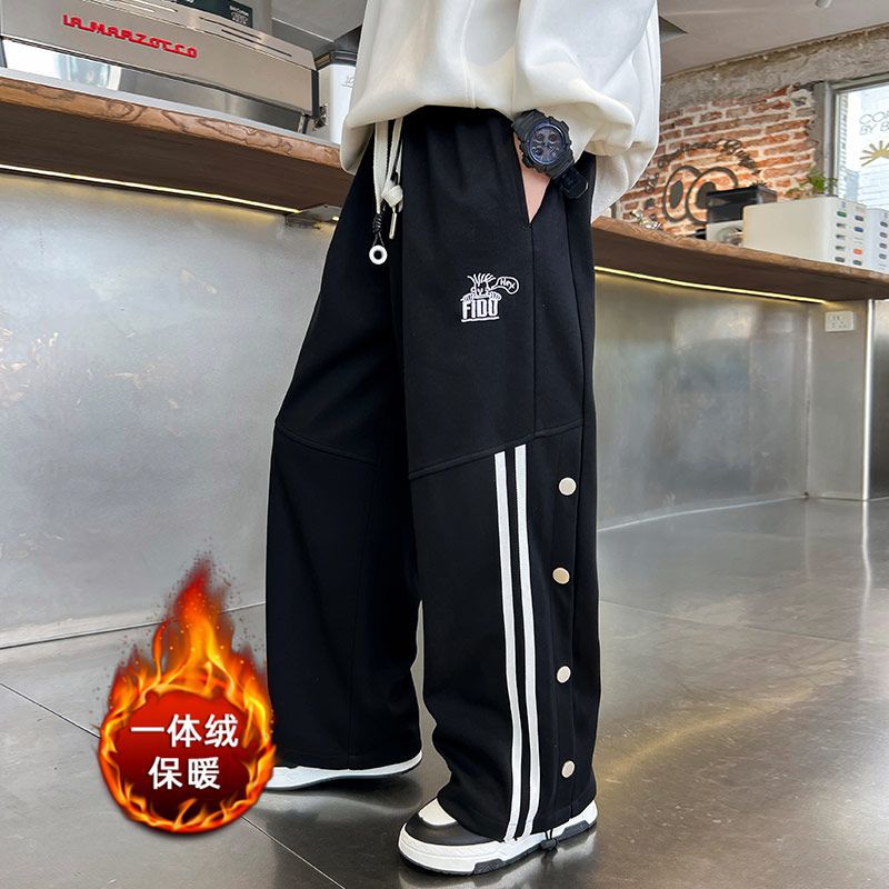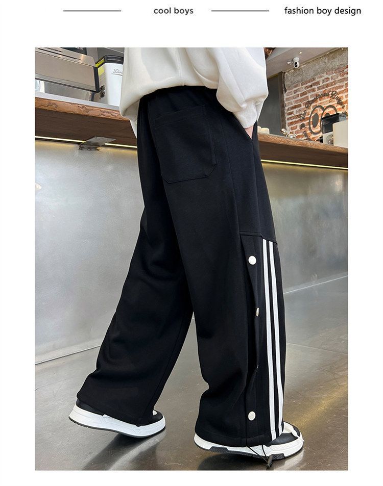 남아 가을 겨울 캐주얼 바지 2024 아동용 한국 스타일 단추 장식 와이드 팬츠 중대형 아동용 기모 바지 봄 가을 스타일