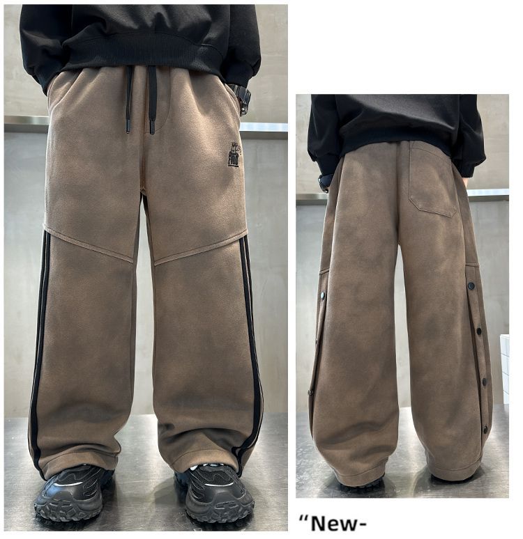 남아 가을 겨울 캐주얼 바지 2024 아동용 한국 스타일 단추 장식 와이드 팬츠 중대형 아동용 기모 바지 봄 가을 스타일스토어 가기