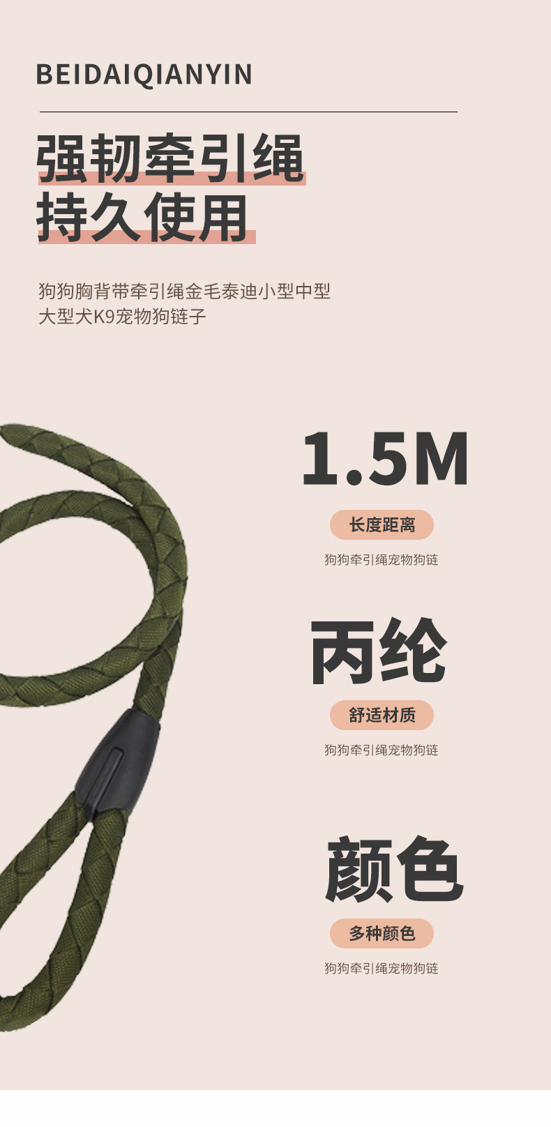 도매 고품질 4 가닥 꼰 소 후크 견인 로프 폭발 개 산책 개 견인 로프 대형견용 애완 동물 견인 견인스토어 가기