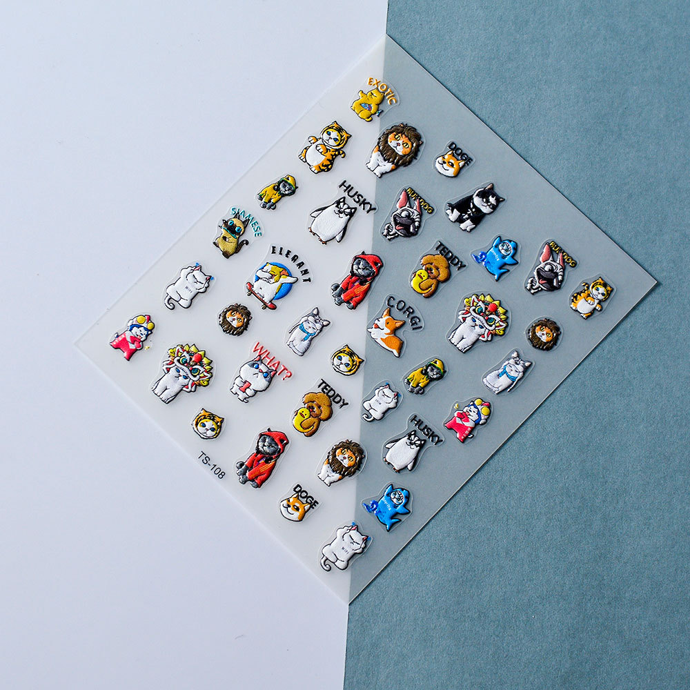 동물 시리즈 5D 강아지 다시 접착제 네일 아트 스티커 구호 새로운 기술 재미있는 고양이 네일 아트 장식 재고