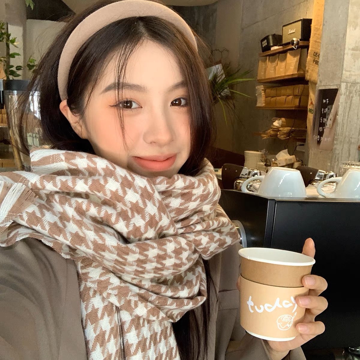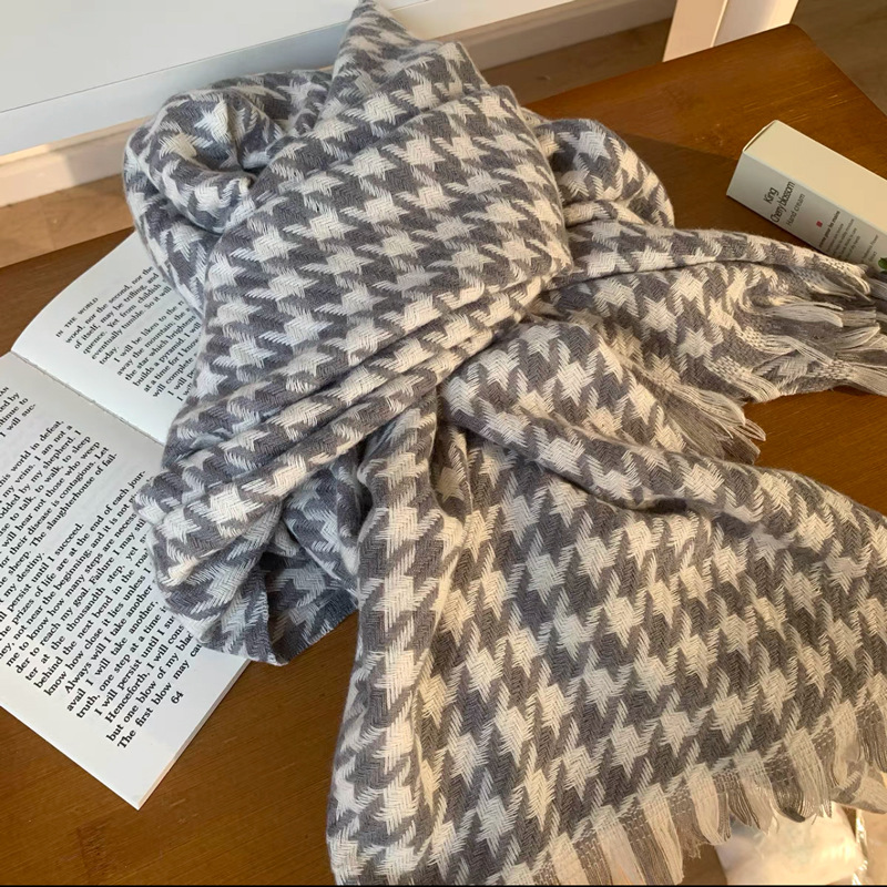 2023 겨울 따뜻한 안티 캐시미어 커플 니트 격자 무늬 스카프 한국식 모든 매치 태슬 Houndstooth 스카프 여성용스토어 가기