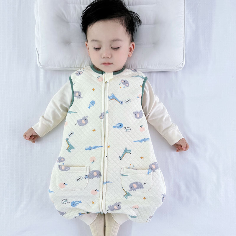 새로운 가을과 겨울 아기의 면 원피스 잠옷 소년과 소녀 민소매 민소매 침낭 어린이 얇은 면 조끼 가정 옷스토어 가기
