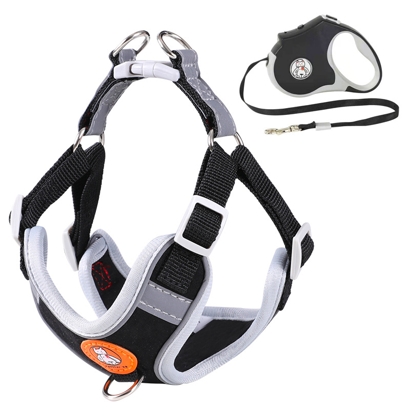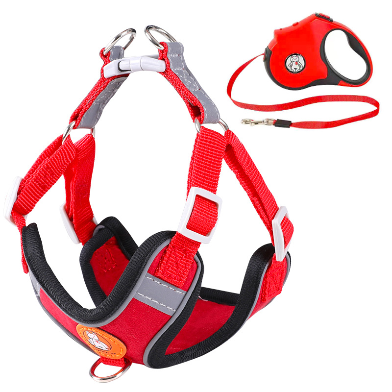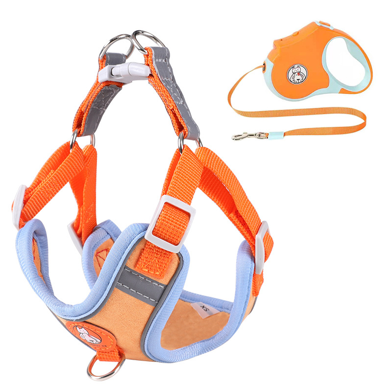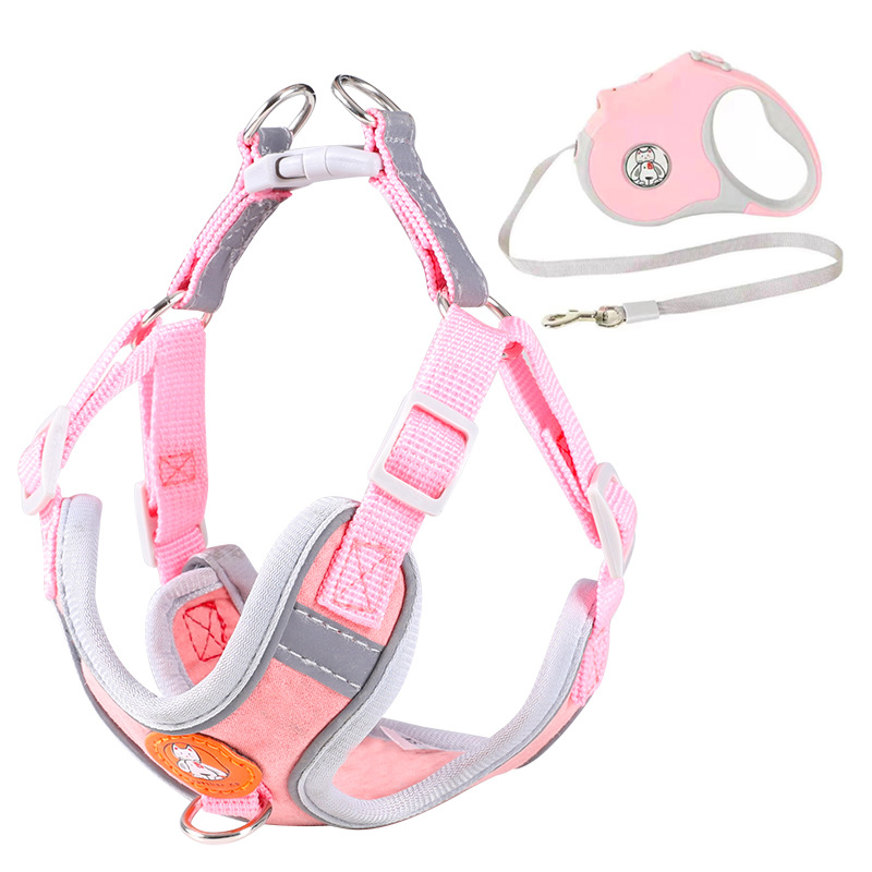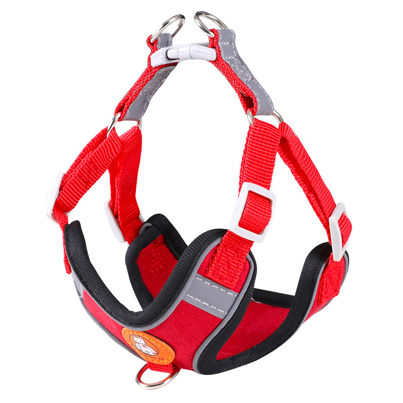 跨境新品狗狗胸背通用反光麂皮绒外出遛狗神器胸背带绳宠物牵引绳