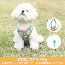 跨境新款宠物用品狗狗牵引胸背套装麂皮绒背心式宠物户外牵引绳