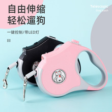 现货批发拼色带灯伸缩牵引器 防挣脱狗狗牵引绳跨境遛狗绳牵引绳