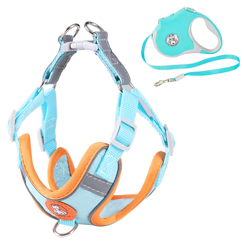 跨境新款宠物用品背心式宠物胸背带反光透气猫咪狗狗牵引绳遛狗绳