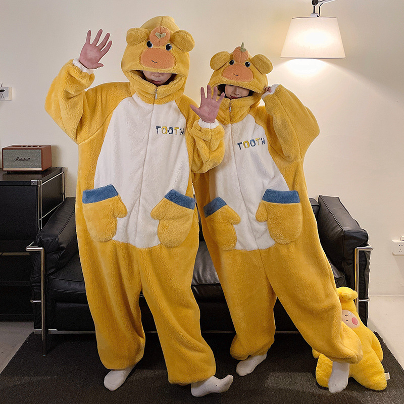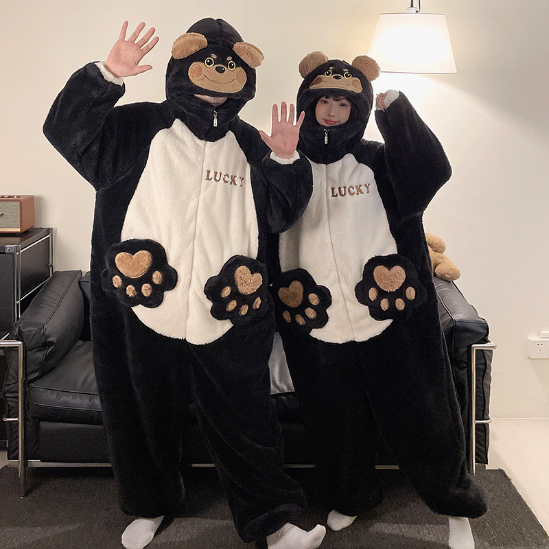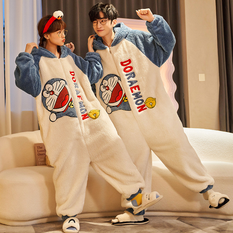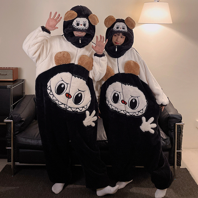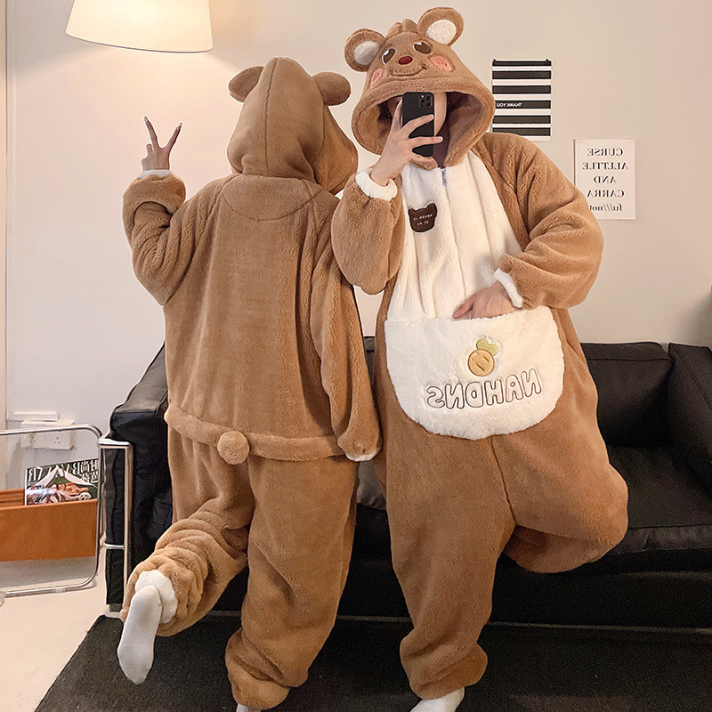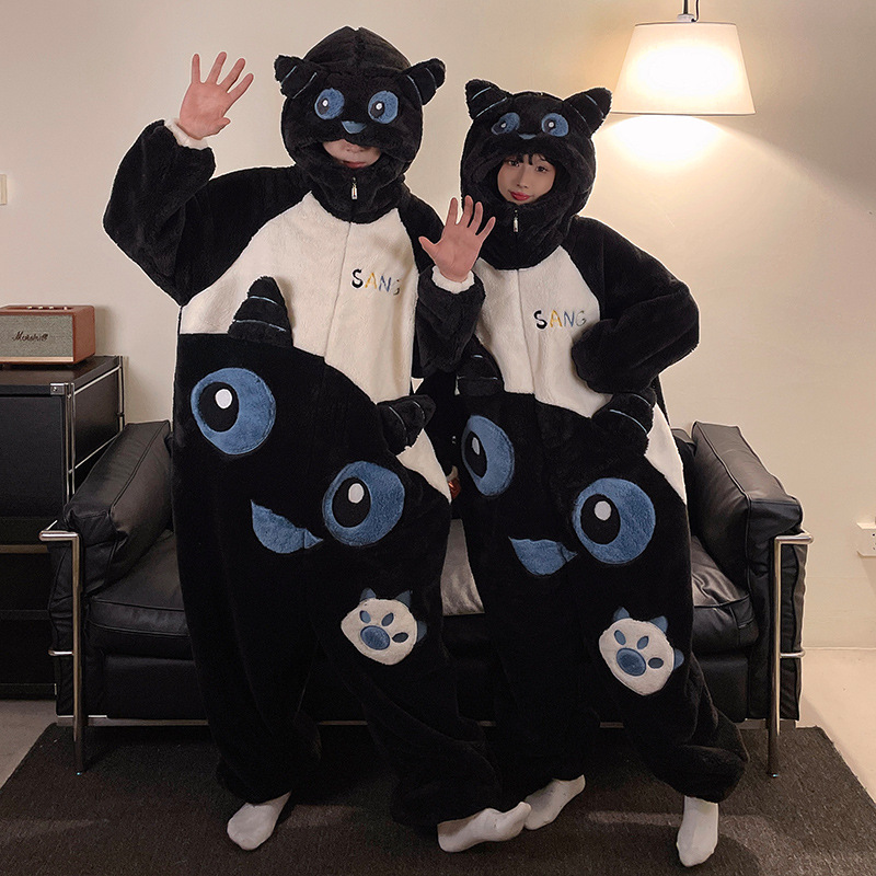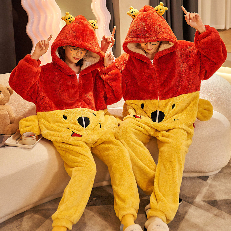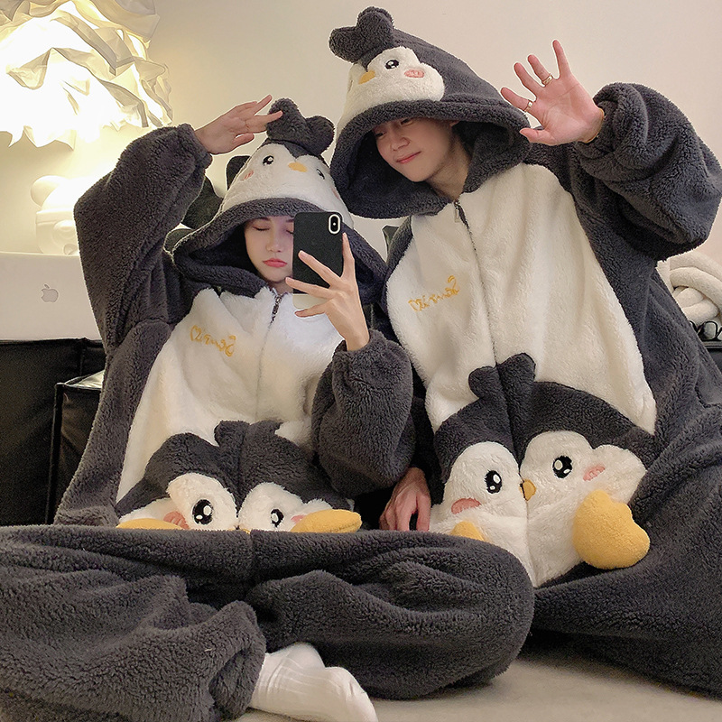 겨울 커플 잠옷 여자의 만화 후드 플러스 뚱뚱한 따뜻한 학생 스타일 홈웨어 200 진스토어 가기