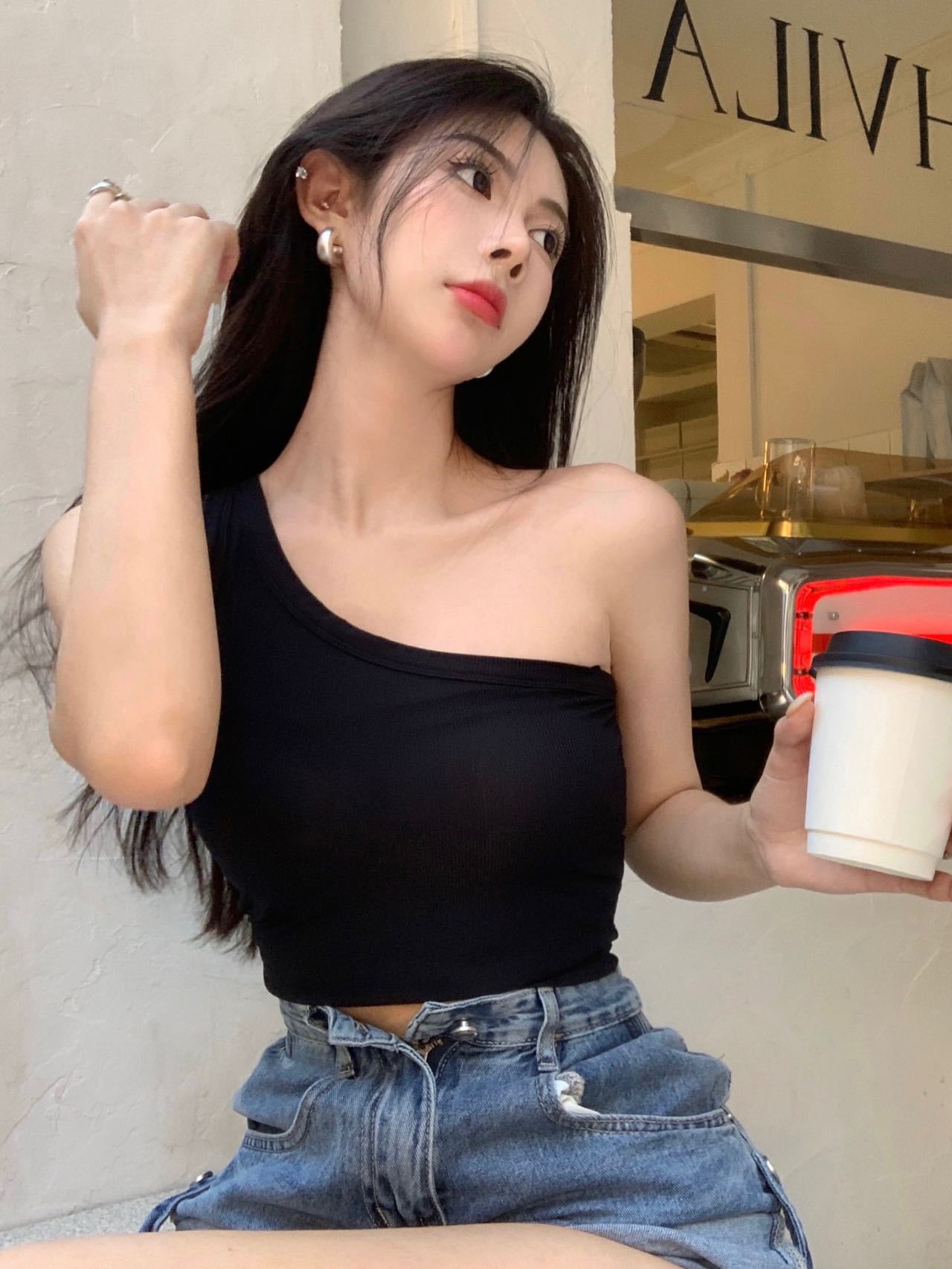 630 아이스 실크 불규칙한 비스듬한 어깨 싱글 숄더 작은 슬링 랩 가슴 내부 및 외부 착용 짧은 섹시한 아름다운 등 여성