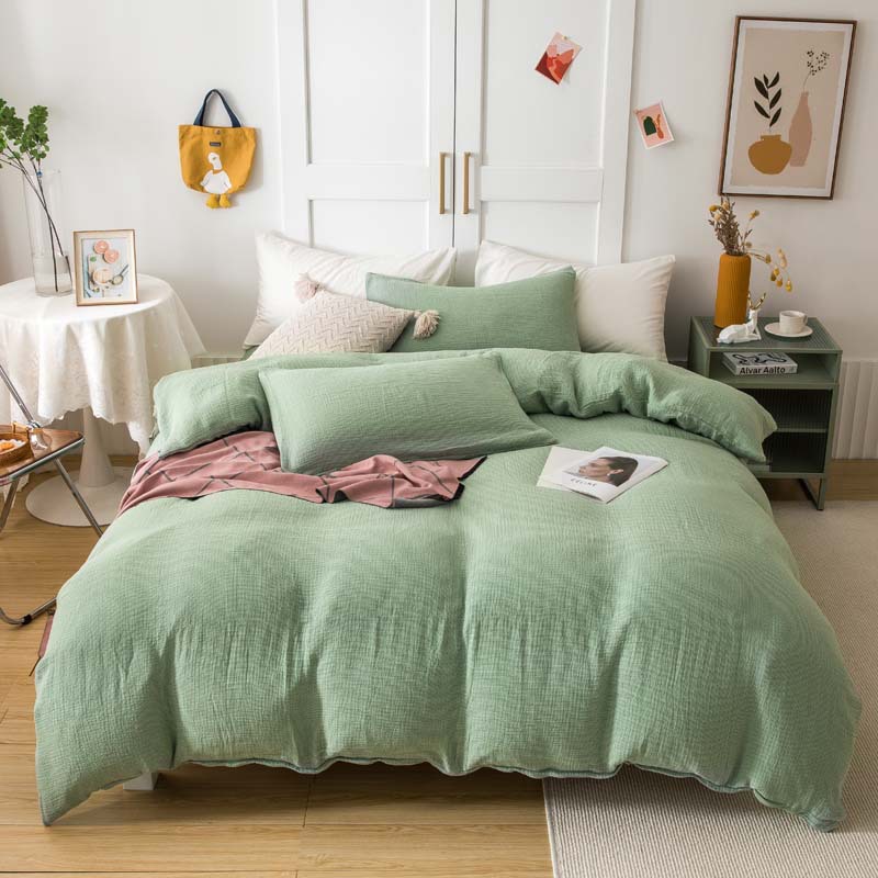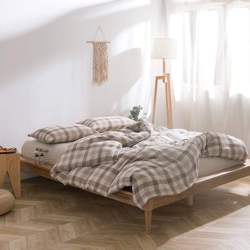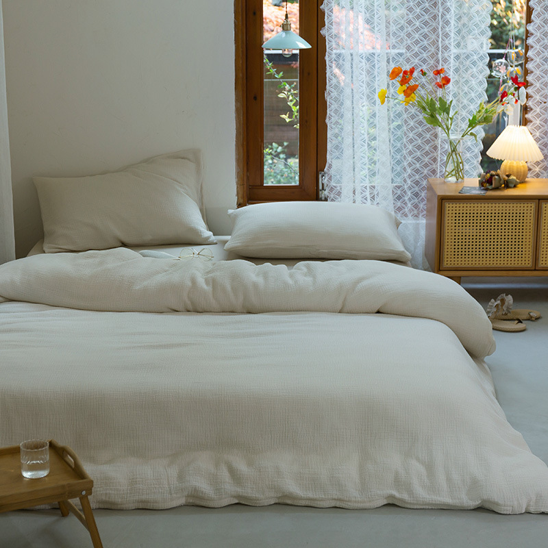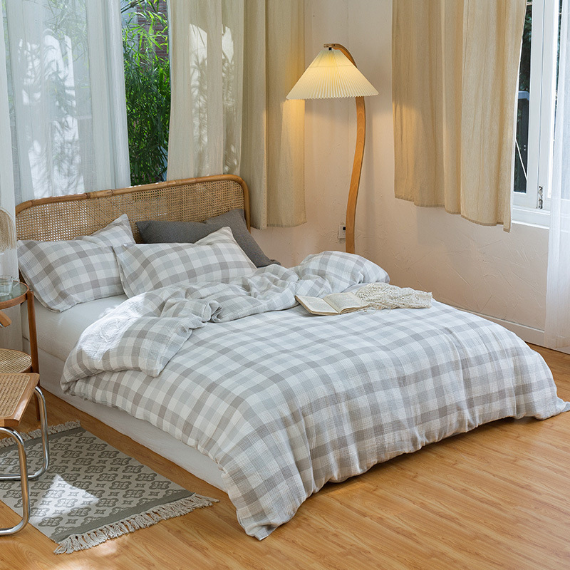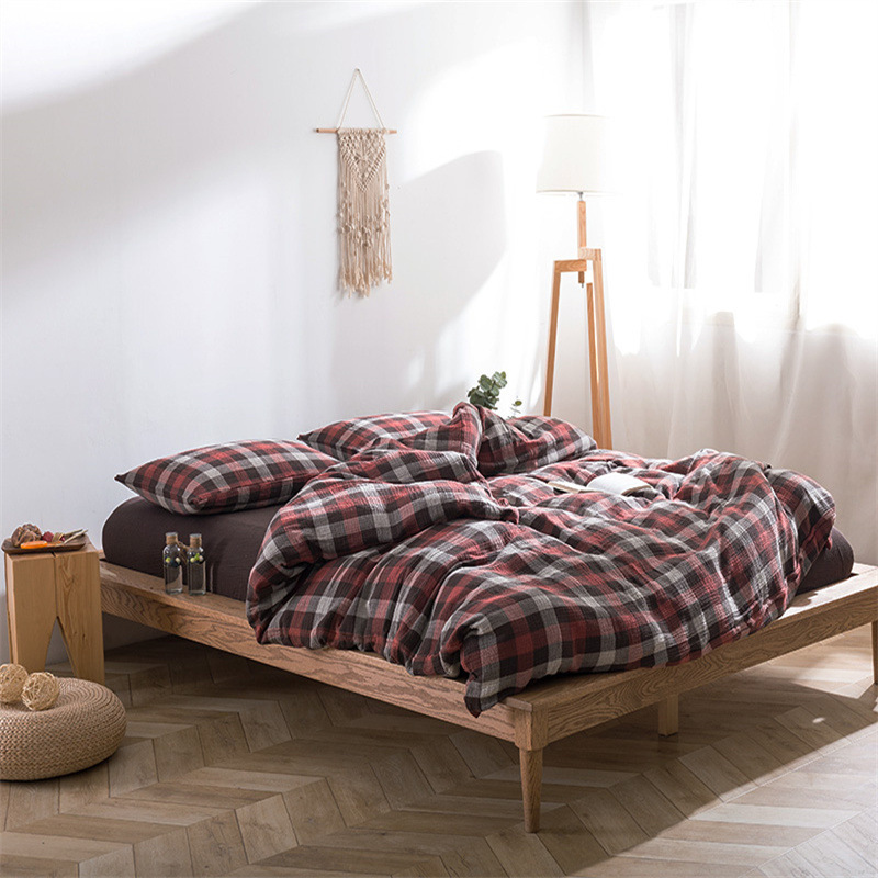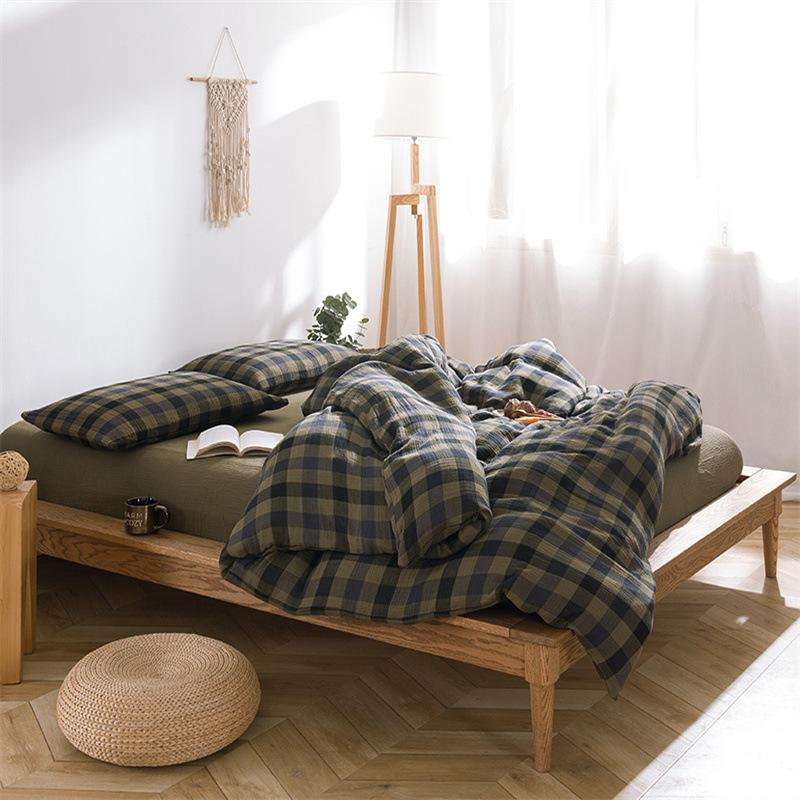 일본 수입 면화 3 층 원사 이불 커버 싱글 알몸 수면 편안한 4 피스 세트 봄과 가을 심플 침구스토어 가기